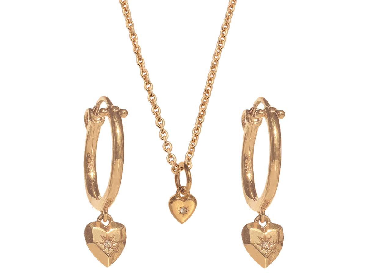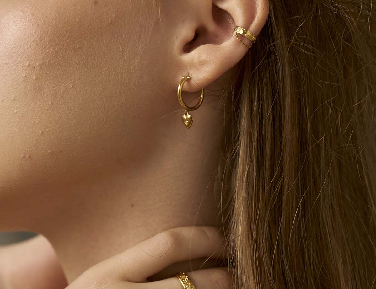 Celebrate the month of love with our capsule Valentine's Day Collection. Inspired by our cult favourite Gilded Heart Pendant Necklace, the now turned miniature pendant can be found in our Aiko Heart Hoops or worn as charm on your favourite hoops or necklace.
