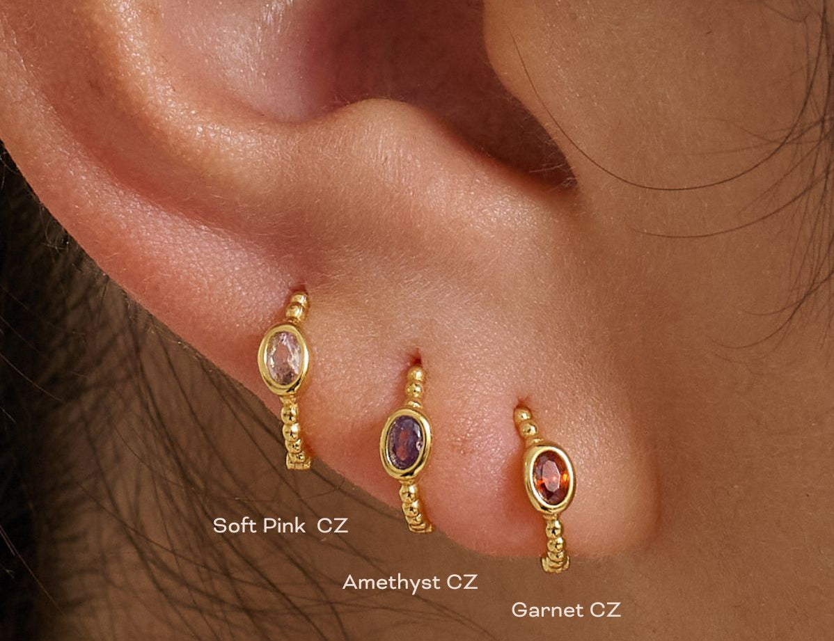 Inspired by the birthstones of each month, we created the Birthstone Piercing Collection as a way to add a hint of colour to your ear stack in a way that is both personalised and unique. A stunning addition to your 14K Solid Gold or Gold Fill jewelry selection, the Ren Lotus Stud and the Cho Butterfly Stud makes beautiful gifts for birthdays, anniversaries and other milestone occasions.