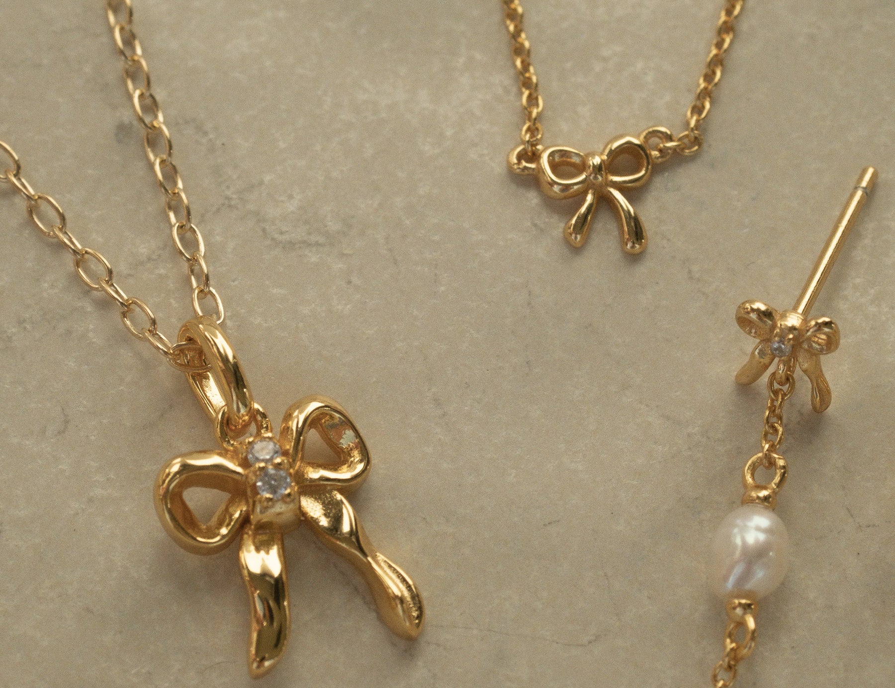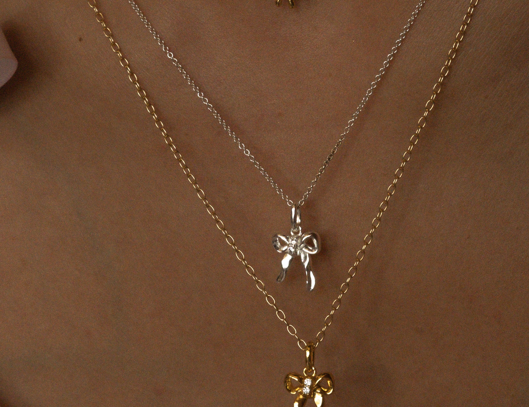 Inspired by all our pink dreams, the Bow collection features the childhood favourite accessory in a playful yet timeless way. Made in 18K Gold Fill, Sterling Silver and Solid Gold, these everlasting pieces will make you squeal 'so cute!'
