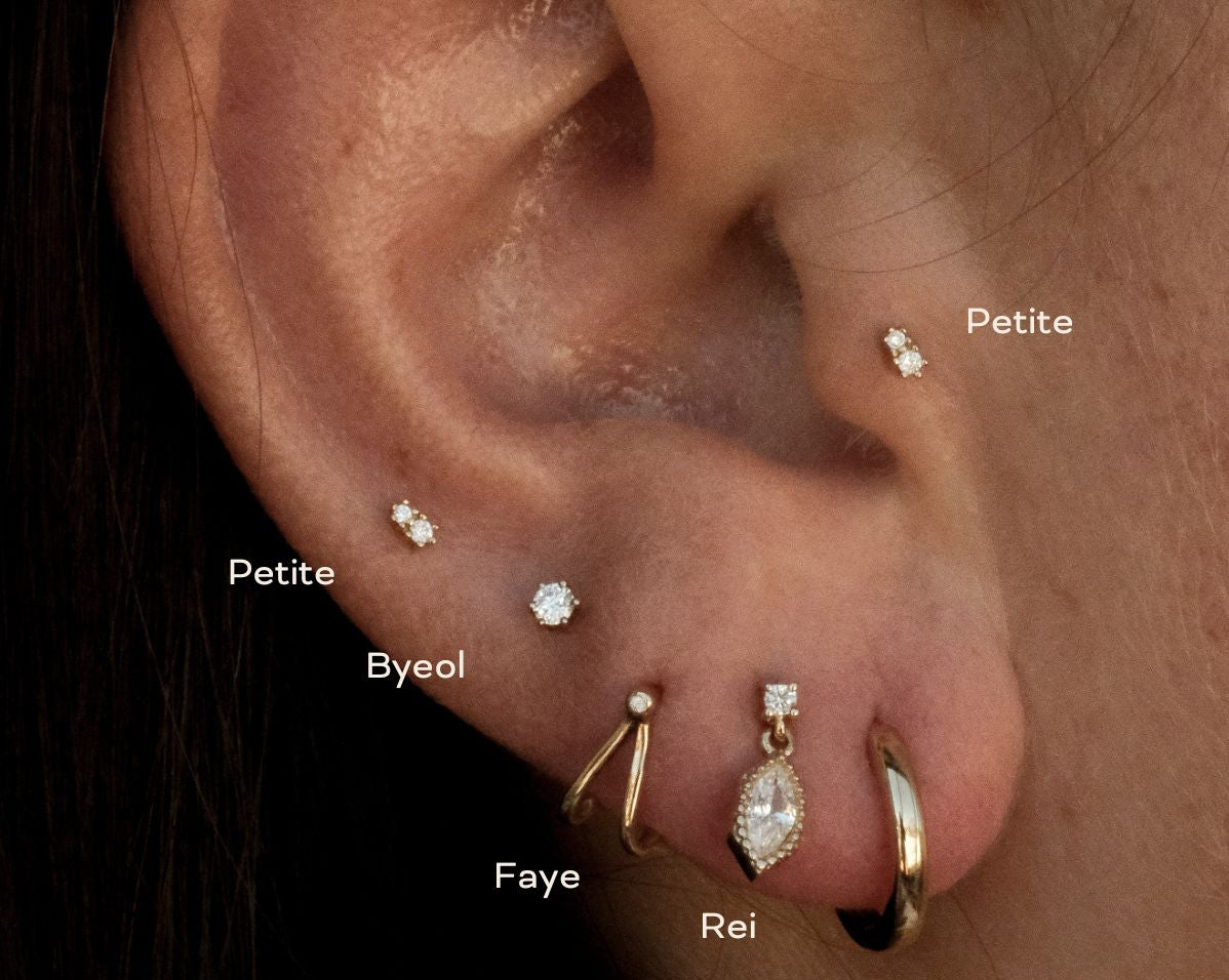 Inspired by the desire to have beautiful and high quality earrings for all our ear piercings, the Piercing Collection is suitable for fresh and healed piercings. With lobe friendly hoops and helix friendly ball back studs, the Piercing Collection can cater for fresh and healing piercings with our 14k solid gold earrings whilst our classic 18k gold fill earrings can be worn in all healed ear piercings.