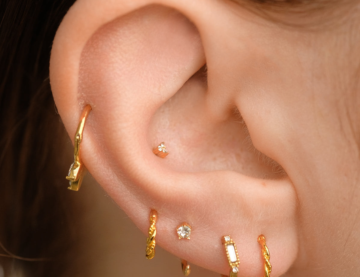 Choose from our selection of 14K Solid Gold Piercing earrings for your next piercing appointment or to simply add a hint of luxury to your ear stack. Made with recycled 14K Solid Gold, these minimal and dainty piercing earrings are unlike any piercing jewelry you've ever seen. All our 14K Solid Gold Piercing earrings feature a ball back fastening for comfort.