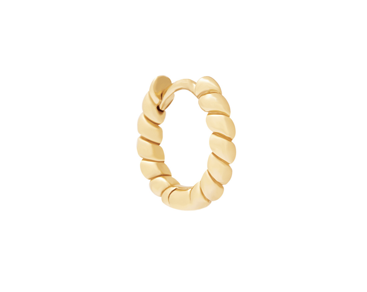 A classic with a twist, our Bella Huggie Hoops is inspired by the aiguillette that is used to adorn and fasten armour worn in the 16th century. Bella is suitable for lobe, helix, forward helix and rook piercings. Personalise her with our mix and match charms or stack her to create a unique earring stack.