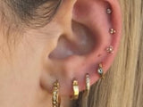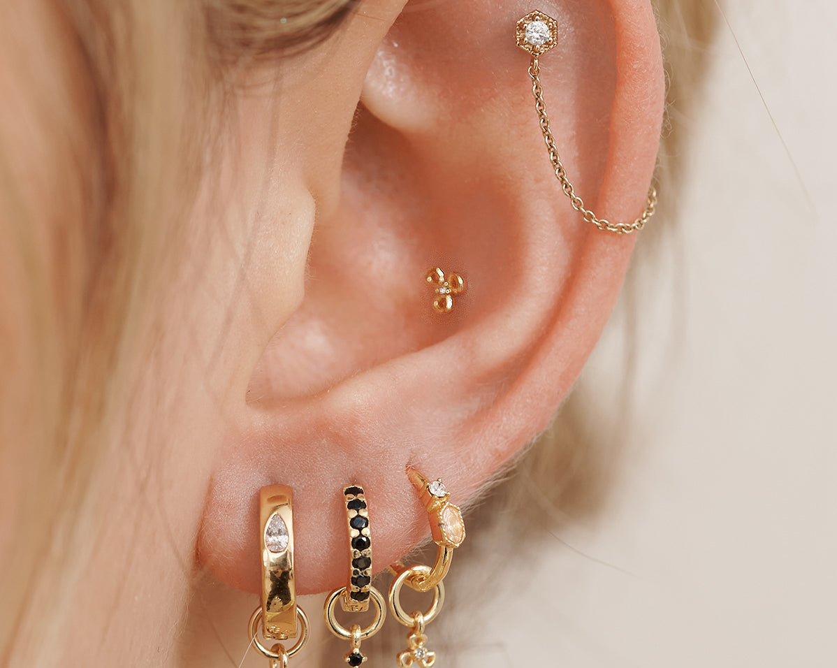 Inspired by the desire to have beautiful and high quality earrings for all our ear piercings, the Piercing Collection is suitable for fresh and healed piercings. With lobe friendly hoops and helix friendly ball back studs, the Piercing Collection can cater for fresh and healing piercings with our 14k solid gold earrings whilst our classic 18k gold fill earrings can be worn in all healed ear piercings. Made ethically in our factories in Mumbai, India, each Piercing Collection piece has been carefully crafted by our artisans just for you.
