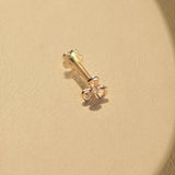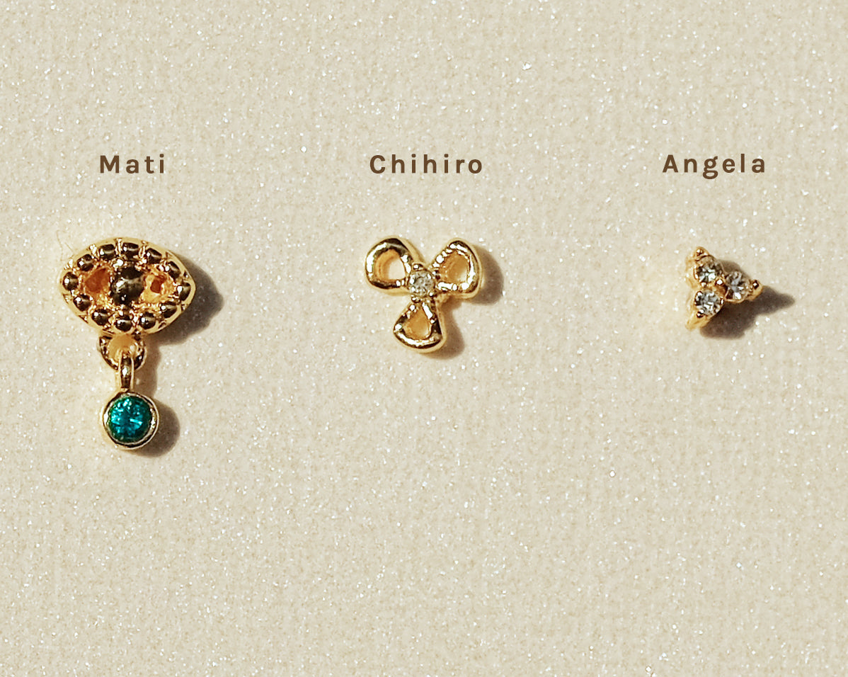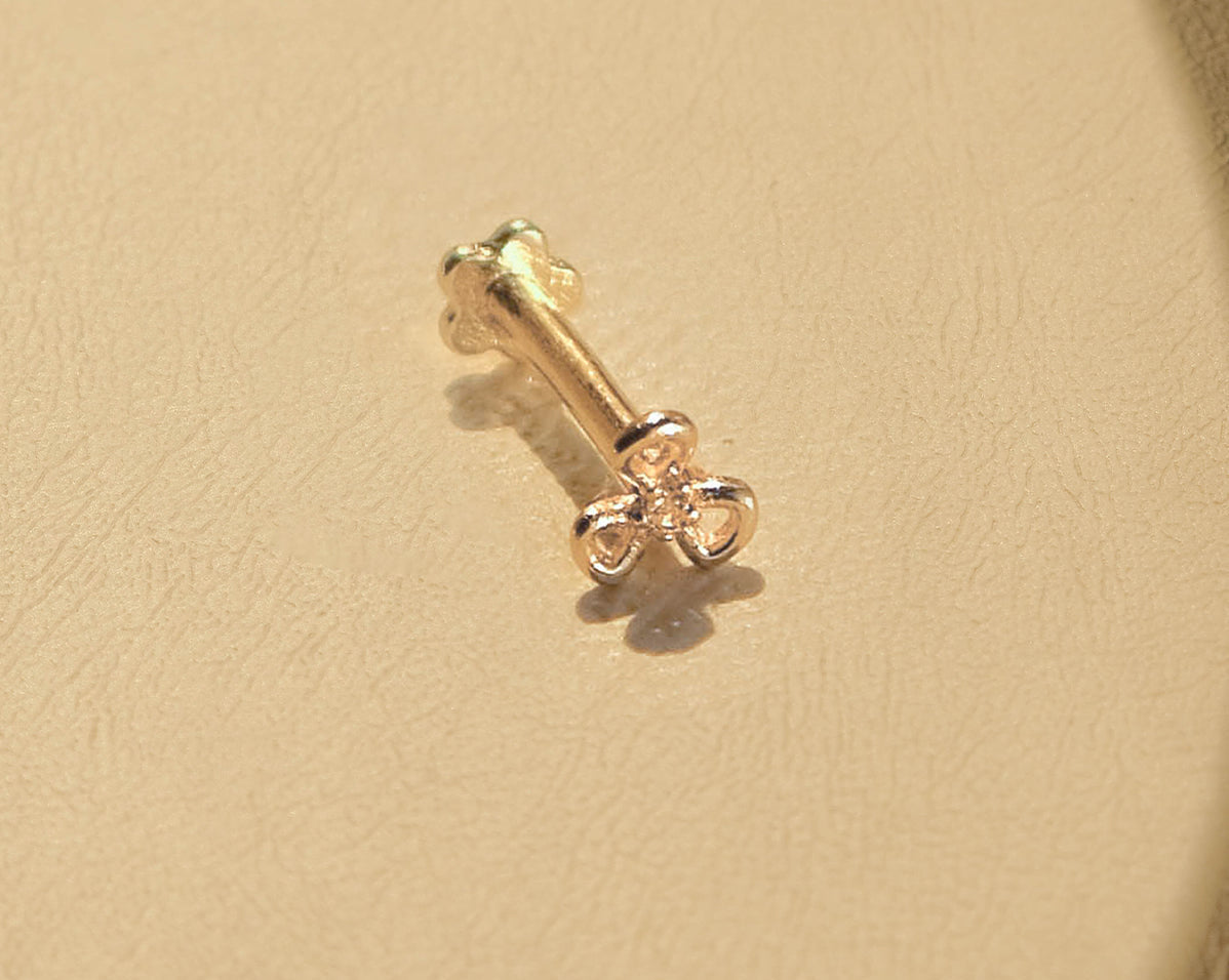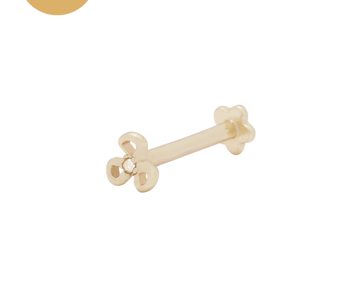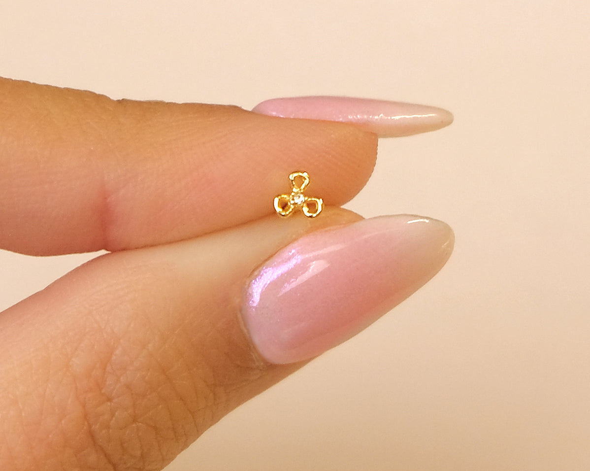 This tiny flower internally threaded flatback stud is suitable for your lobe, upper lobe, helix, front helix, tragus, conch, front helix, conch, flat piercing.