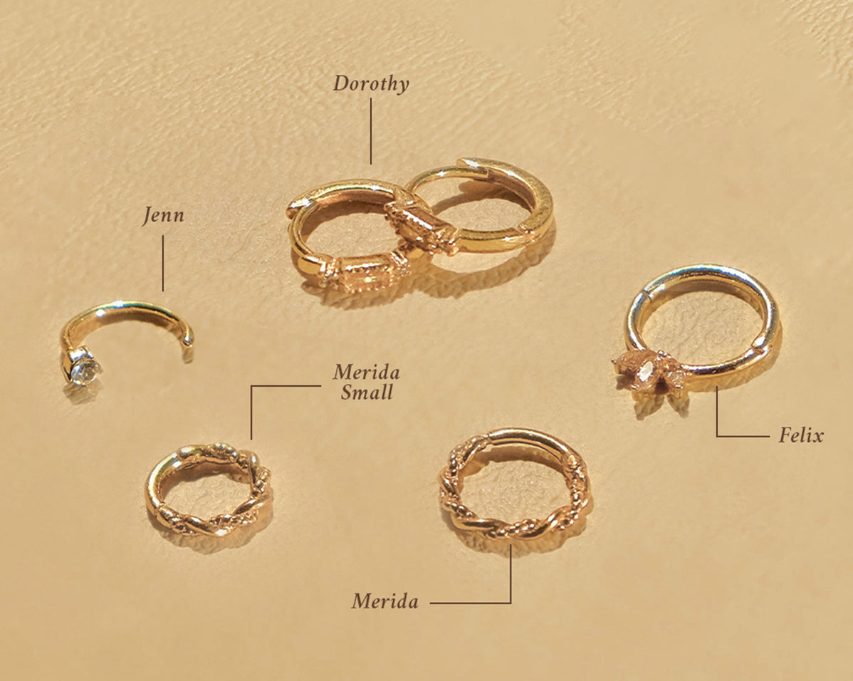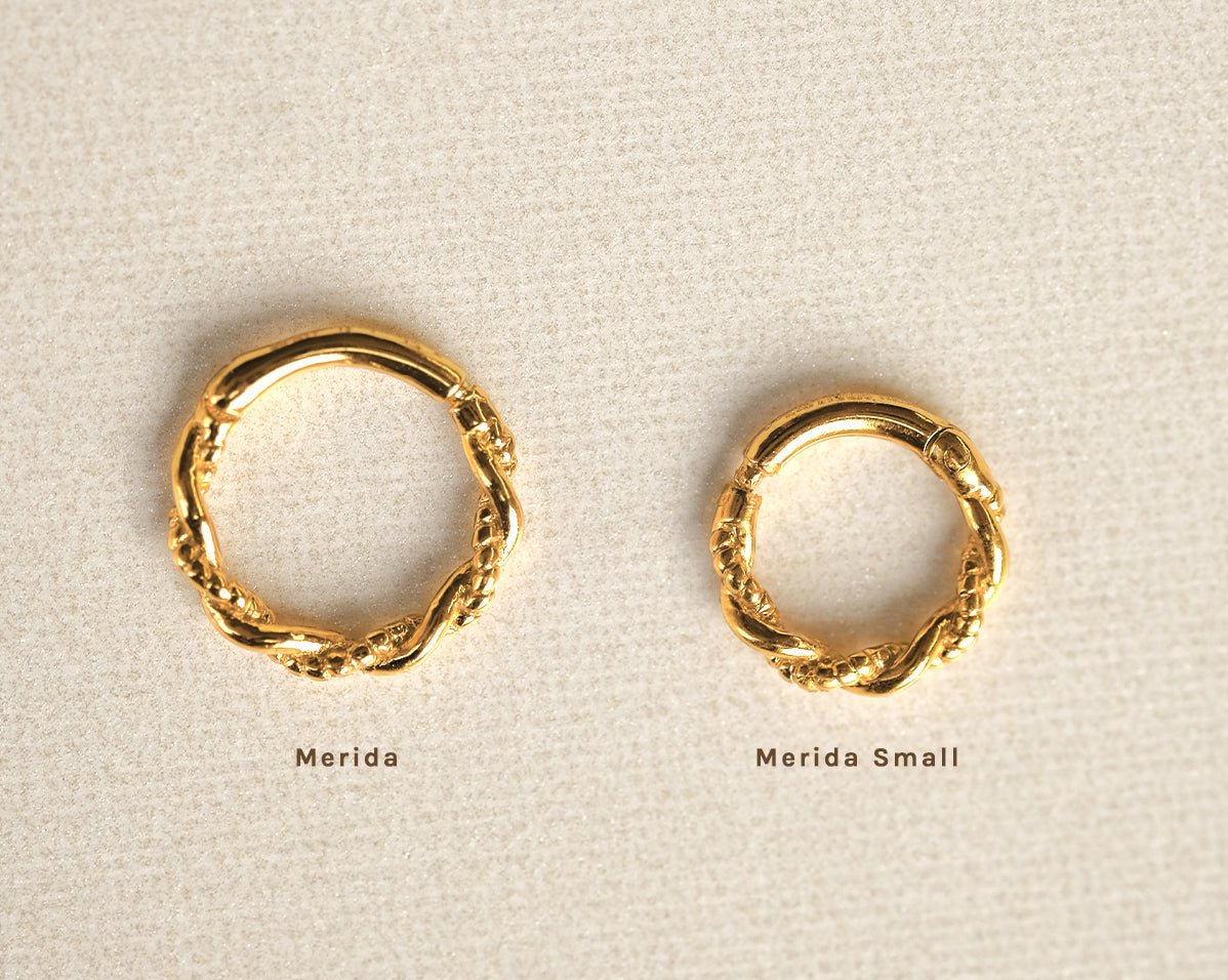 Merida is is a petite hoop that is suitable for healed upper lobe, helix, tragus, rook and septum piercings.