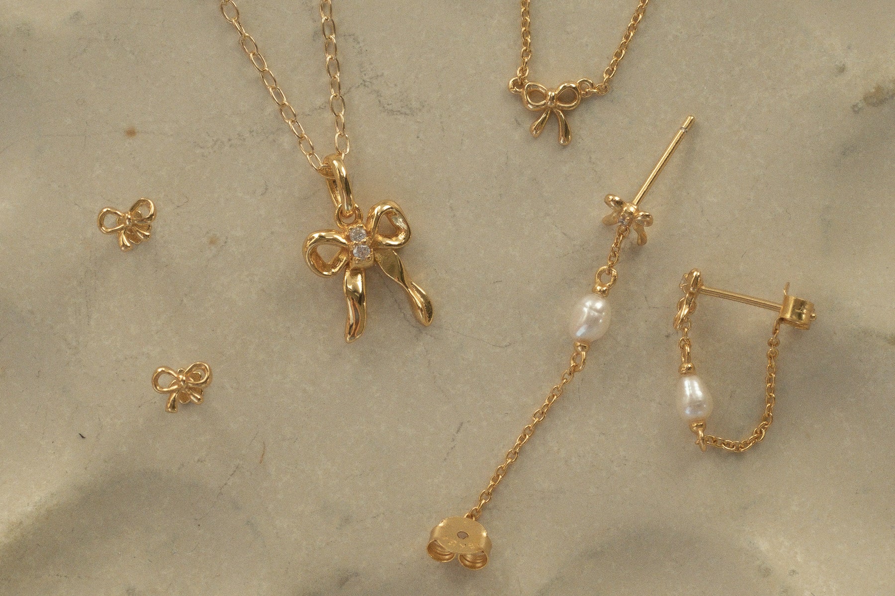 Inspired by all our pink dreams, the Bow collection features the childhood favourite accessory in a playful yet timeless way. Made in Solid Gold, 18K Gold Fill and Sterling Silver, these everlasting pieces will make you squeal 'so cute!'