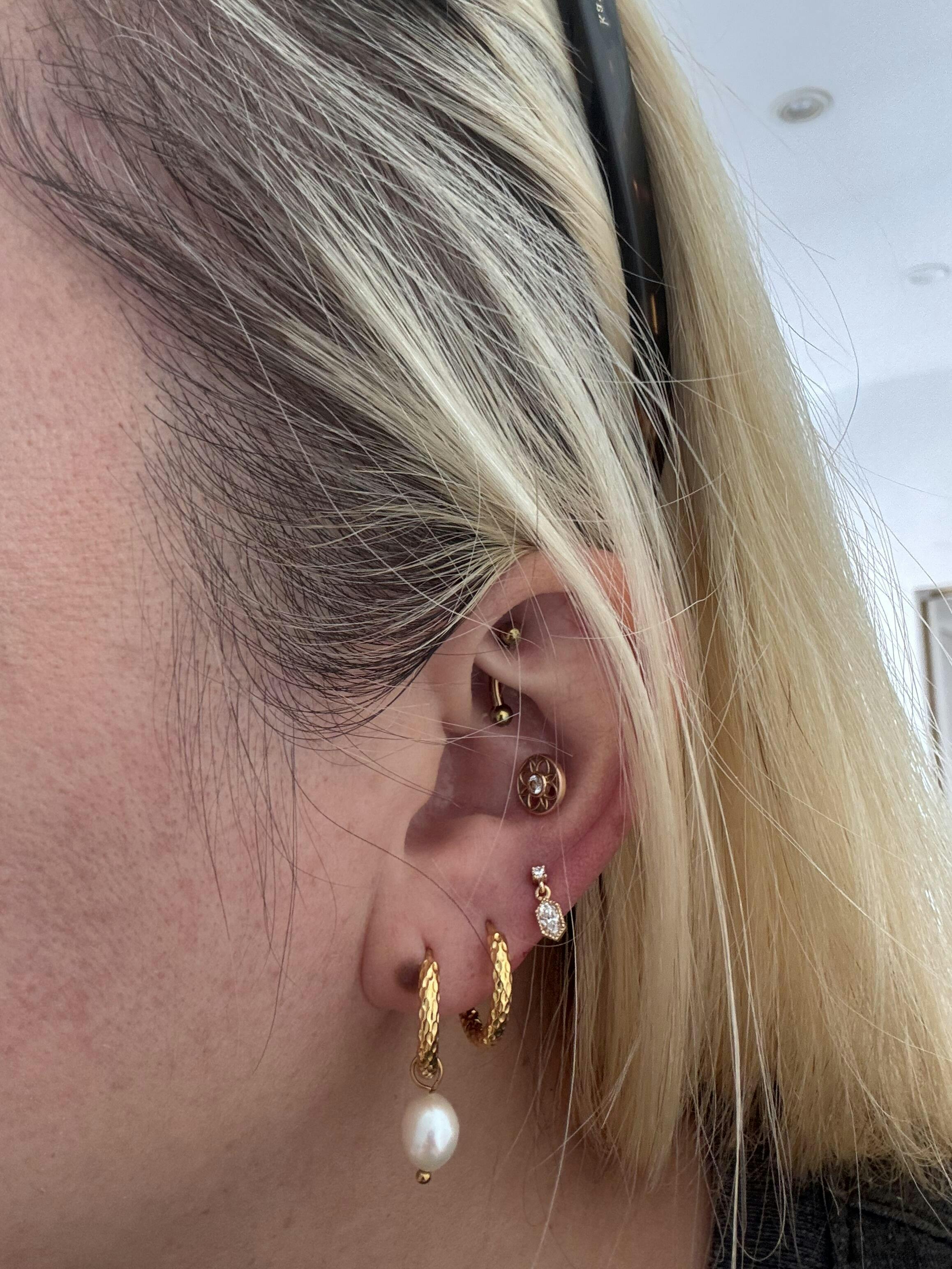 Inspired by the desire to have beautiful and high quality earrings for all our ear piercings, the Piercing Collection is suitable for fresh and healed piercings. With lobe friendly hoops and helix friendly ball back studs, the Piercing Collection can cater for fresh and healing piercings.