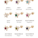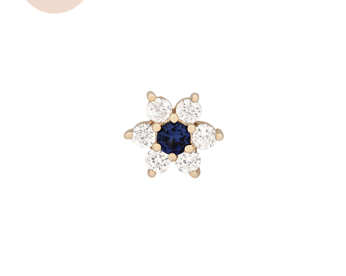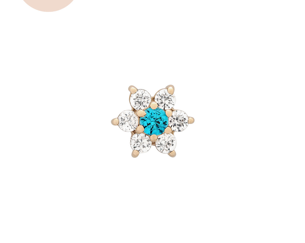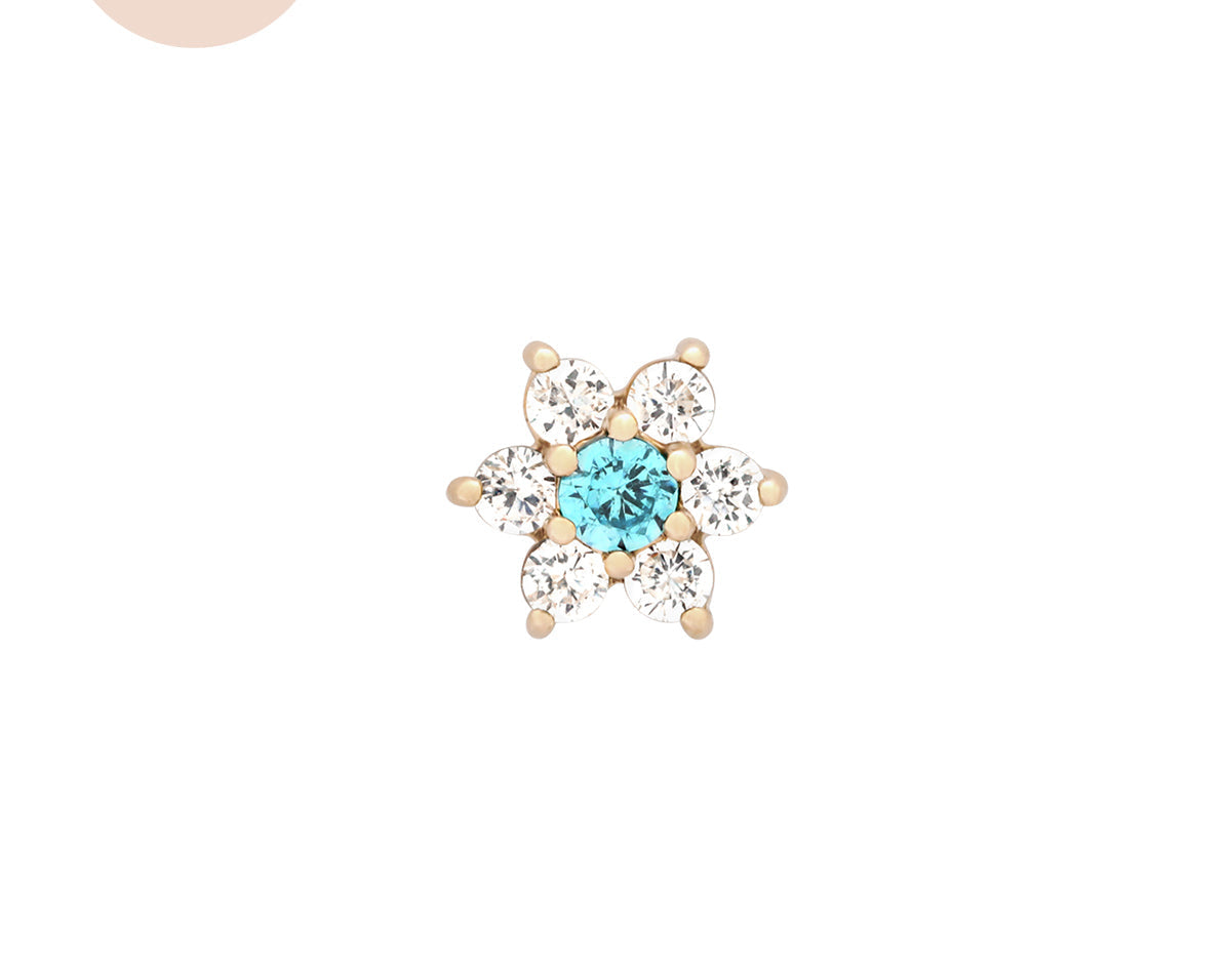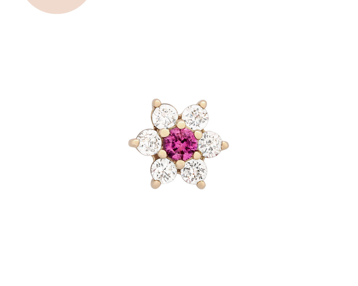Featuring six glistening petals dotted by an eye-catching birthstone, Ren is the perfect personalised addition to your curated ear stack. Fit with a ball back, Ren can always be worn comfortably in your lobe, forward helix, helix, conch, flat or tragus piercings.