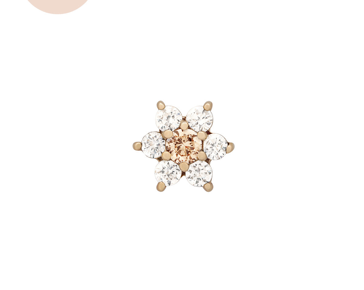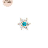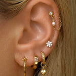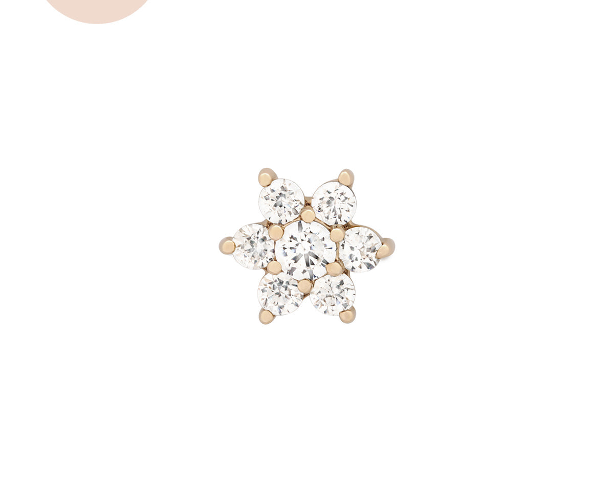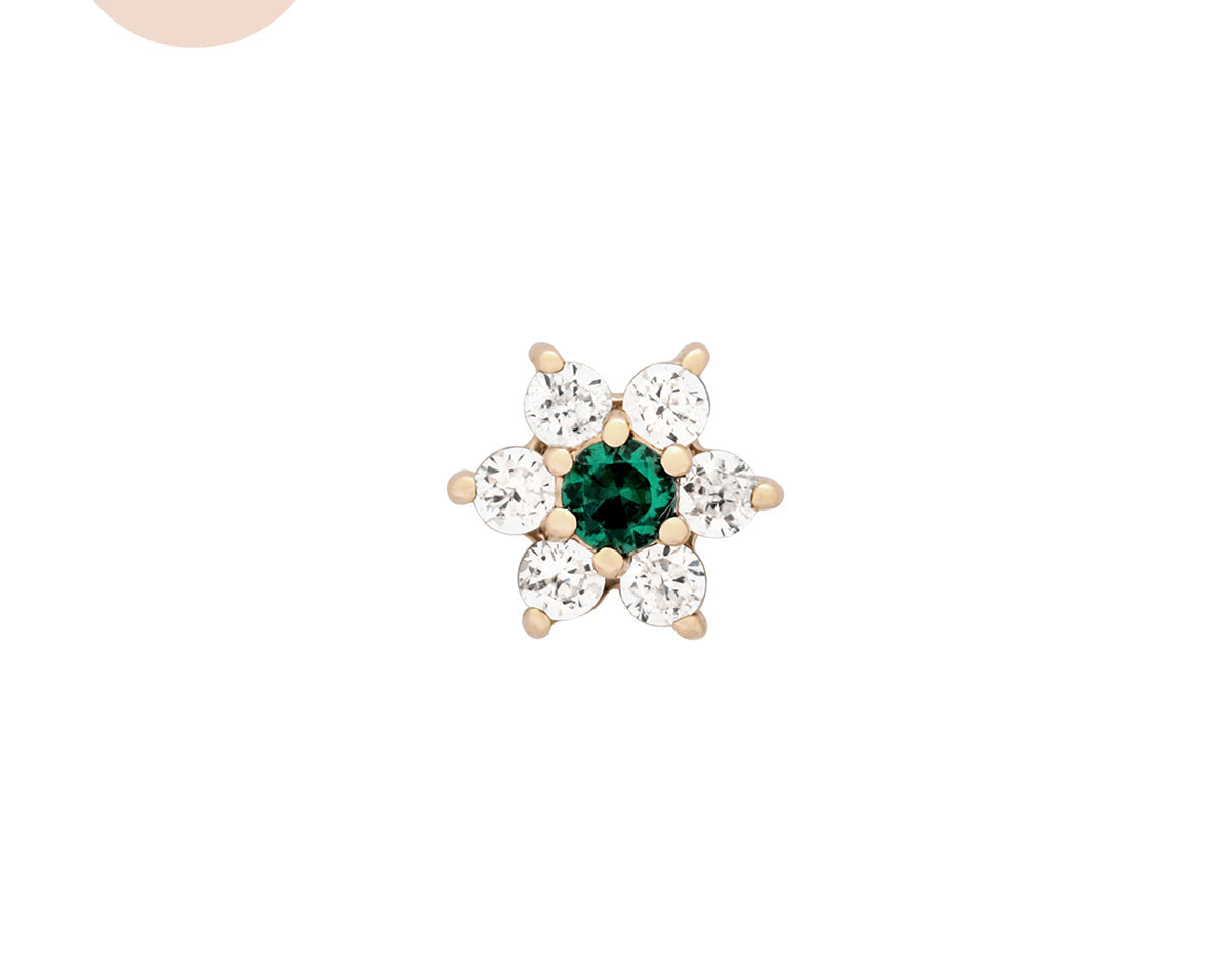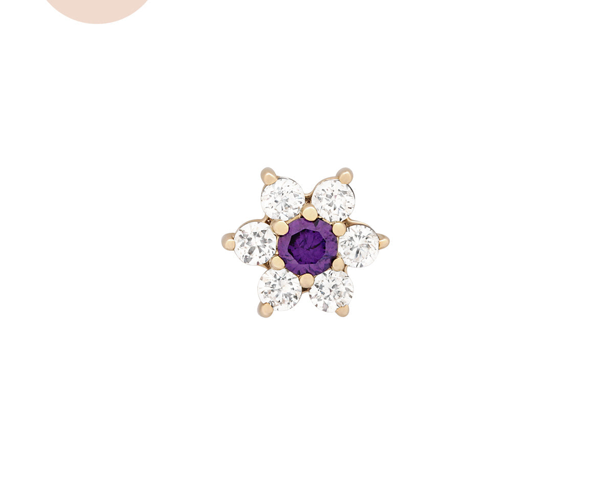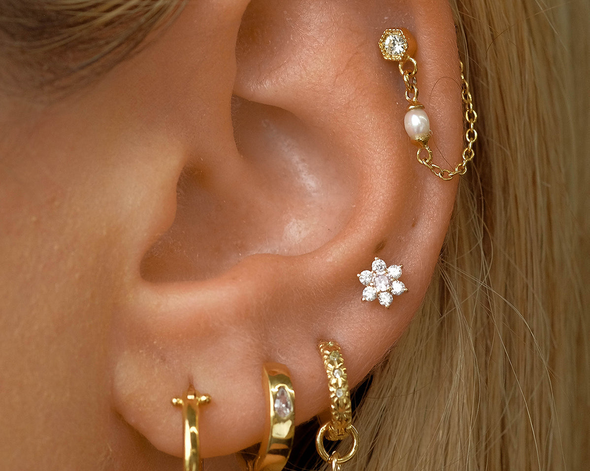 Featuring six glistening petals dotted by an eye-catching birthstone, Ren is the perfect personalised addition to your curated ear stack. Fit with a ball back, Ren can always be worn comfortably in your lobe, forward helix, helix, conch, flat or tragus piercings.