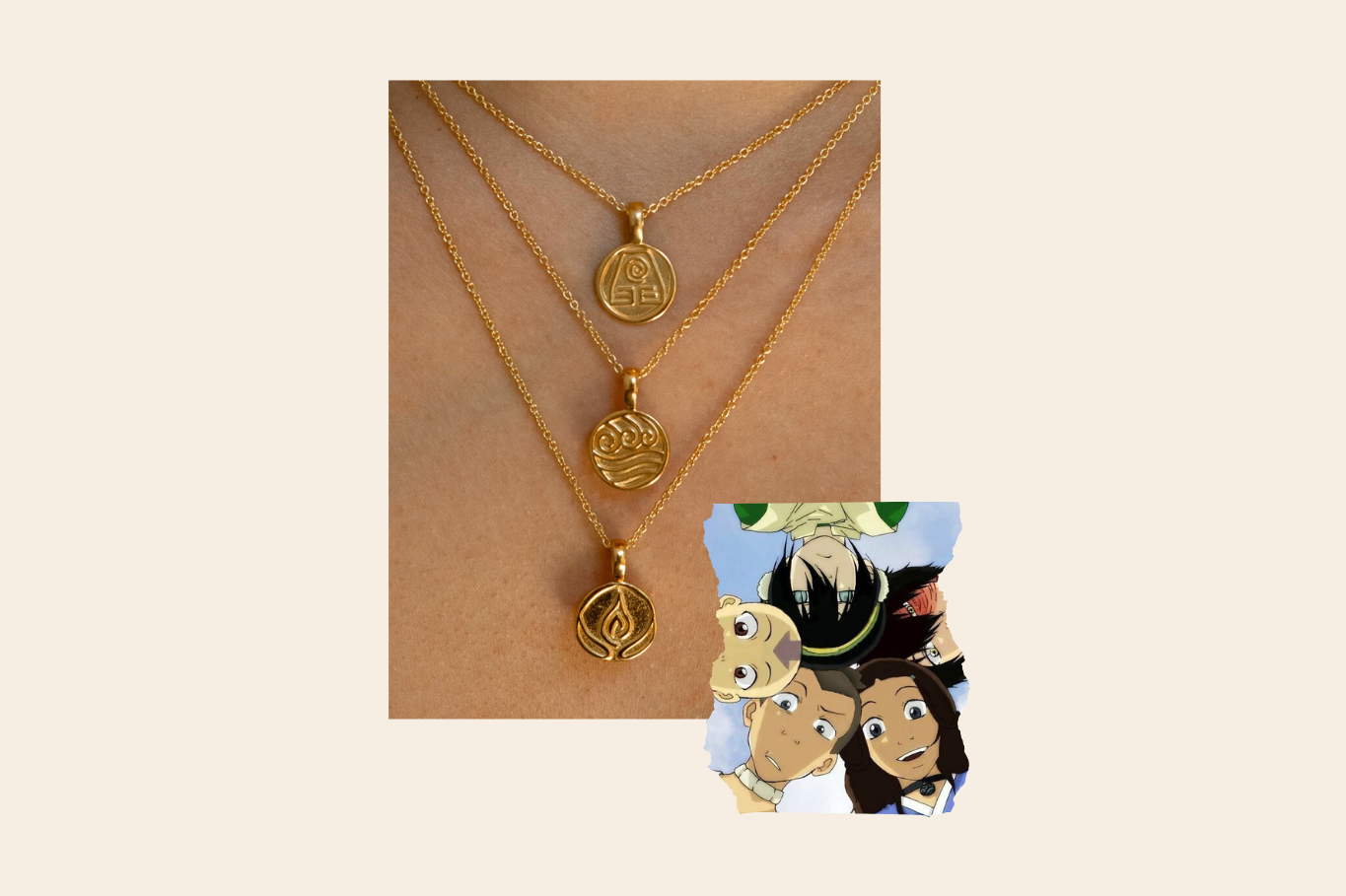 A tribute to the Water Nation and its spirit of adaptability, healing and balance. Just like Katara’s journey, this necklace embodies the calm strength that comes from finding balance in chaos.