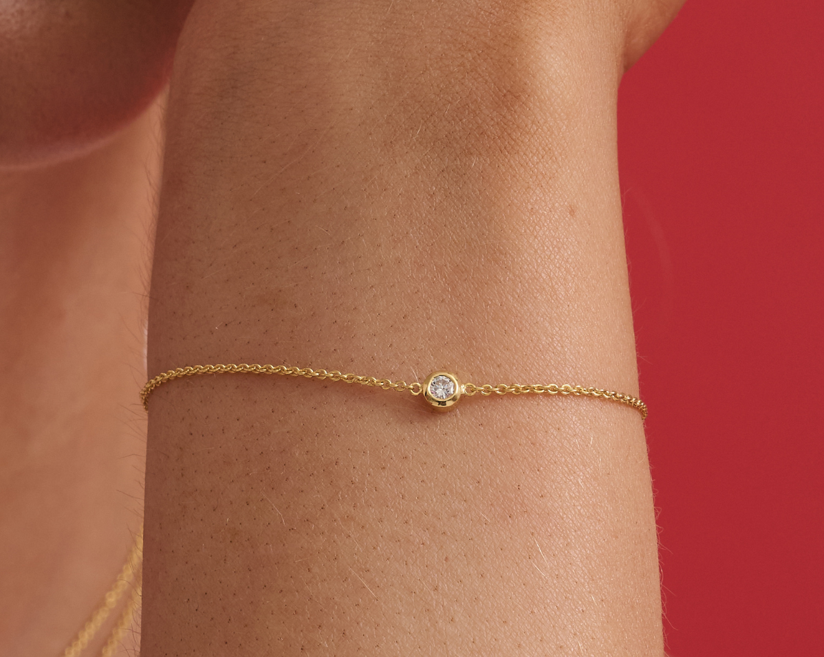 Aarre means “treasure” in Finnish, and this bracelet is as special as its name. Made from solid gold and featuring a bezel-set diamond it’s a meaningful piece that’s perfect for you or a special gift for someone you treasure.