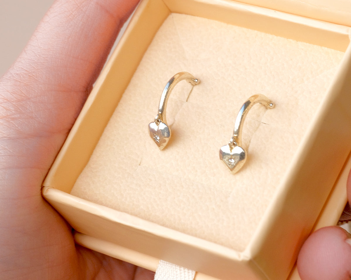 Celebrate the month of love with our timeless Gilded Heart Pendant turned mini into the Aiko Heart Hoops. Inspired by my grandmother's vintage heart pendant, these hoops make the perfect minimal homage.