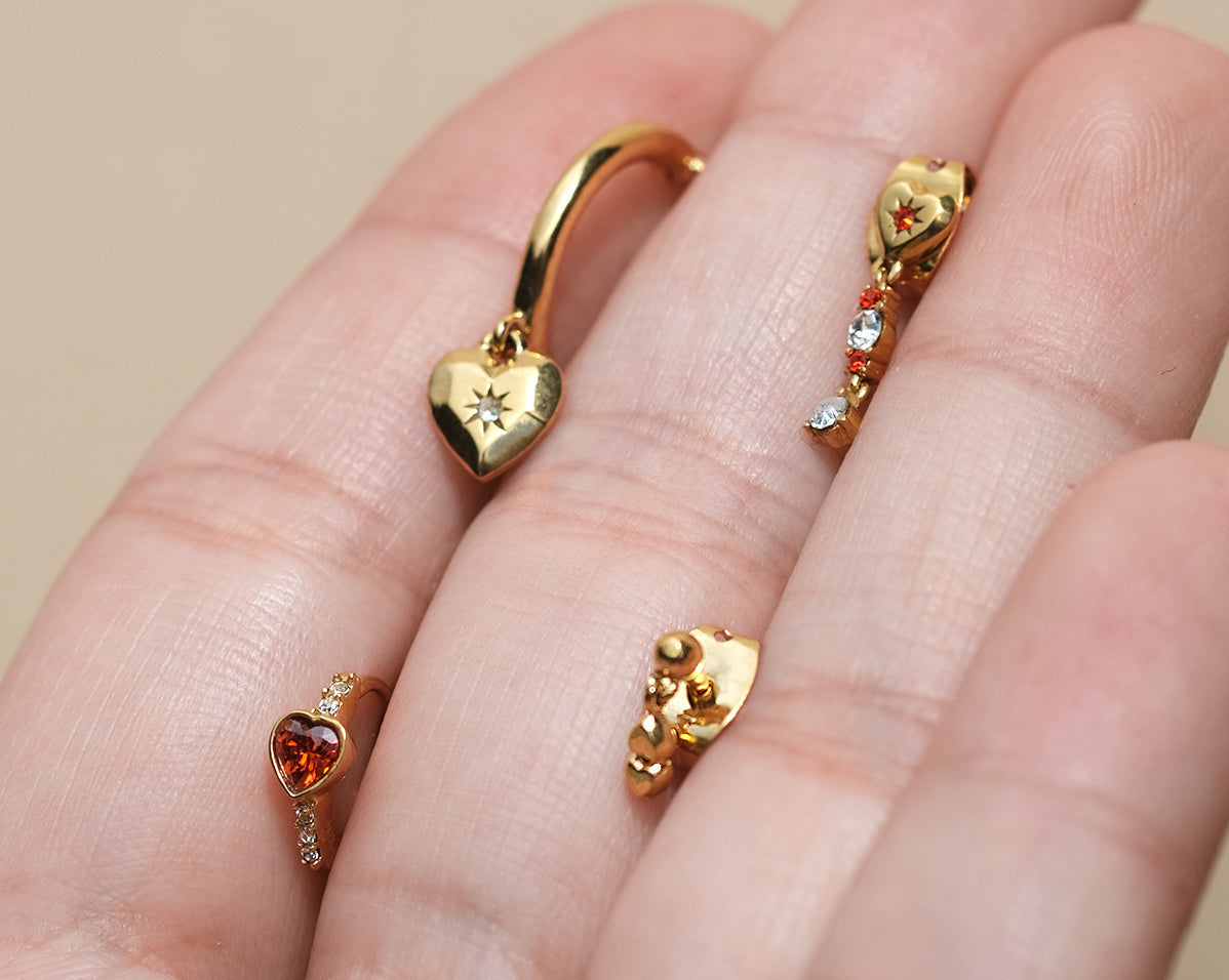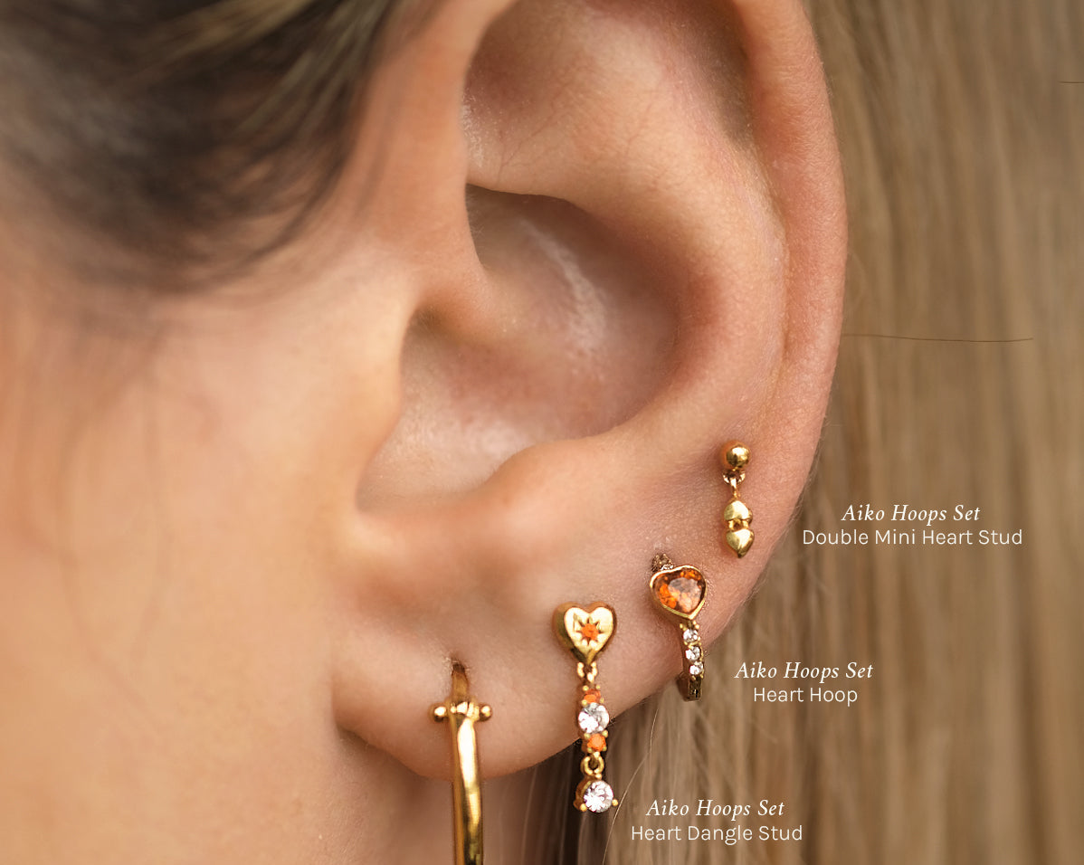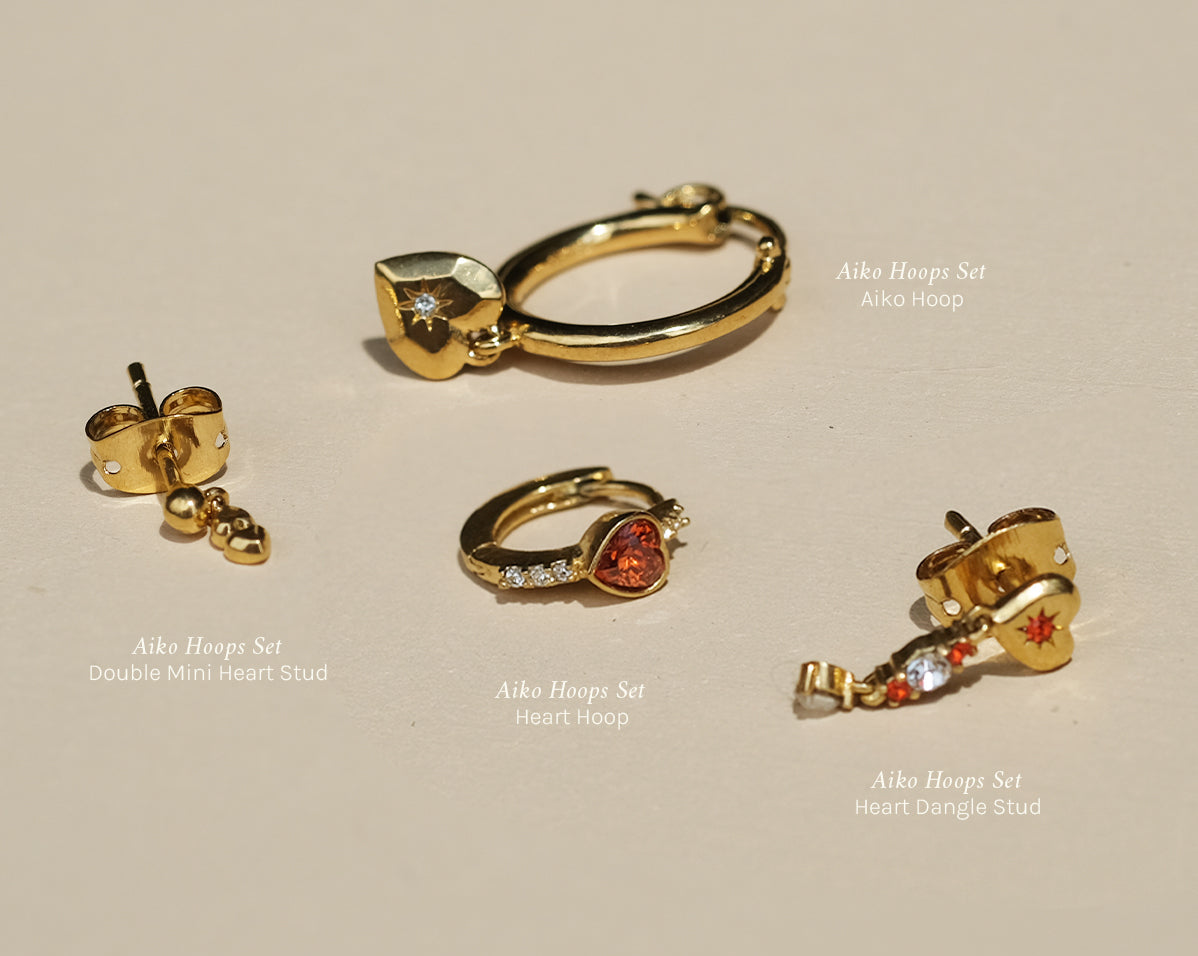 This cute Aiko Hoops Set features our favourite Aiko Heart Hoops and selection of minimal heart inspired earrings perfect to create your dream stack.