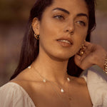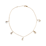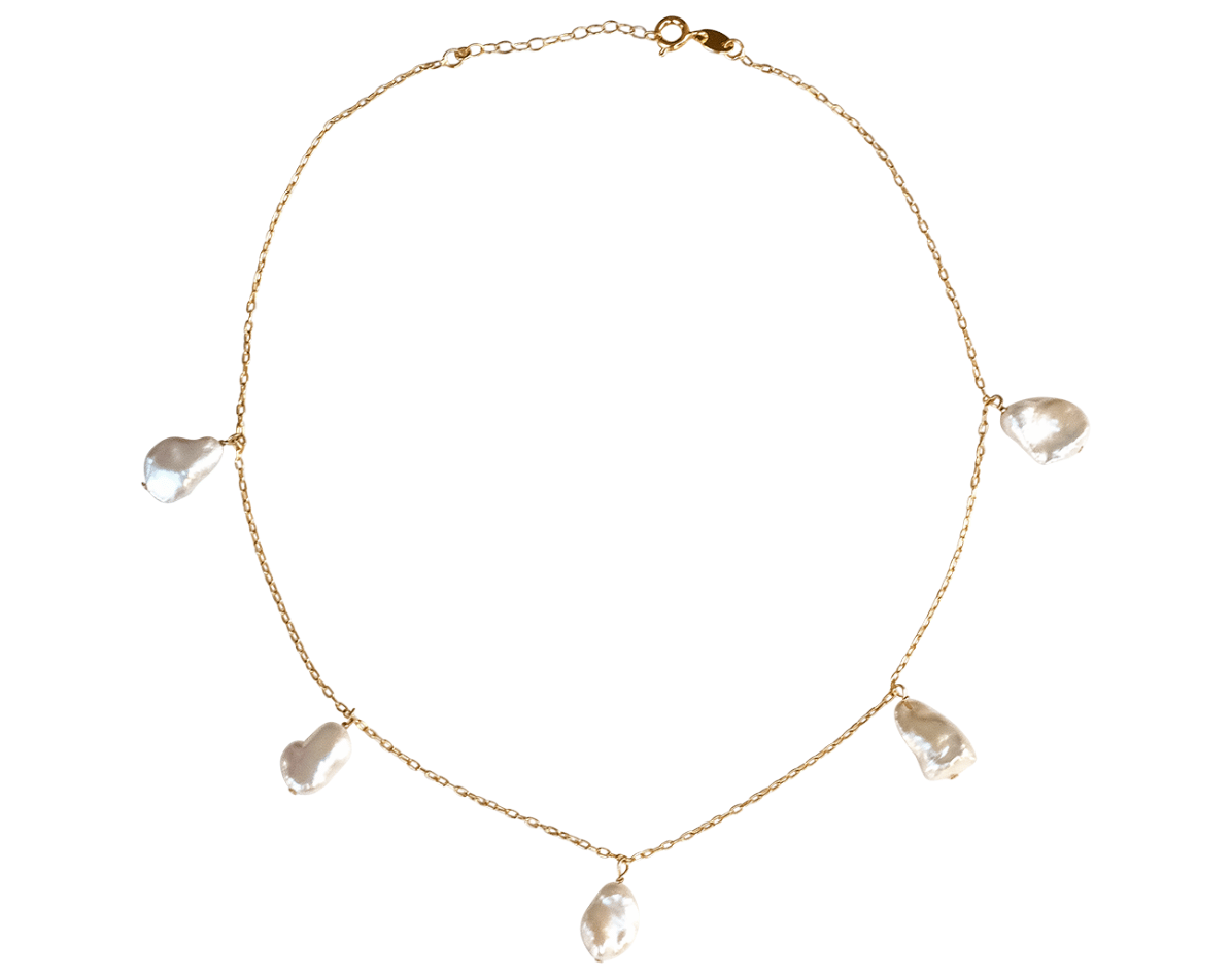 A waterfall of freshwater pearl goodness, Ana will frame your décolletage to perfection. Handmade with genuine freshwater pearls and 14K gold fill components, she is delicately adorned on a minimal 16 inch gold filled chain.