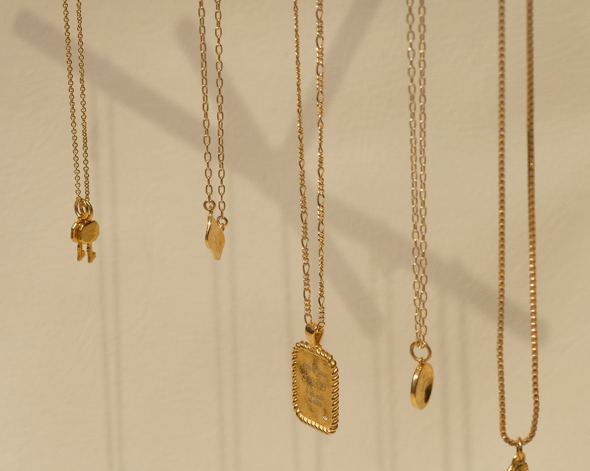 With any type of jewelry, even solid gold and solid silver, regular cleaning and upkeep is needed to keep your jewelry in its best condition. Simply use warm water and soap or a polishing cloth to clean. You can use our jewelry in water, however do wipe it down with warm water after you’re done, especially after being submerged in salt water. Sweat can also make your jewelry duller quicker, especially necklaces, so remove these when you are working out. Avoid exposing your jewelry to skin care products, soaps, detergents and perfumes. Store your jewelry in your S-kin Studio pouch or box to avoid moisture and metal on metal rubbing.
