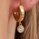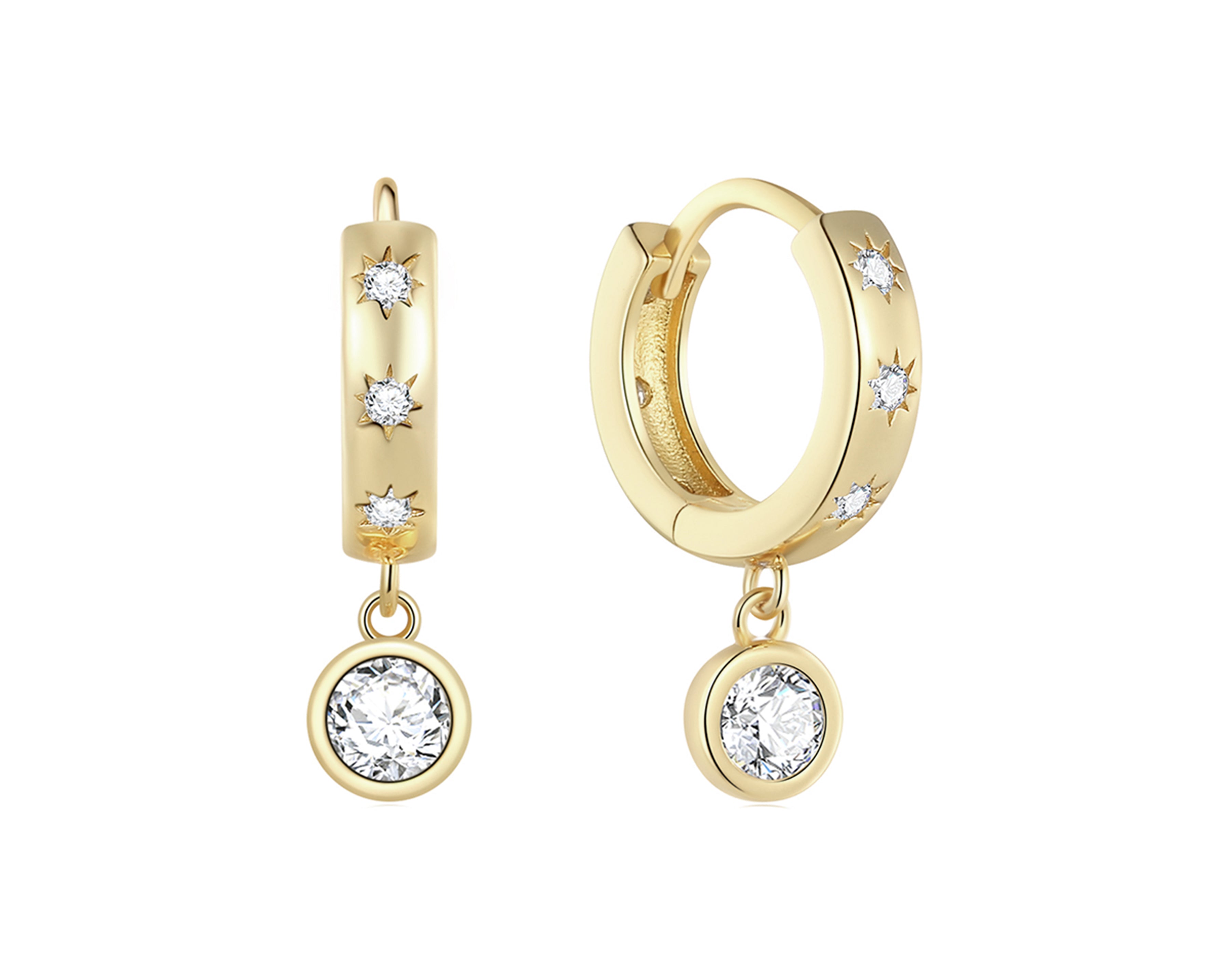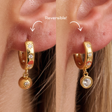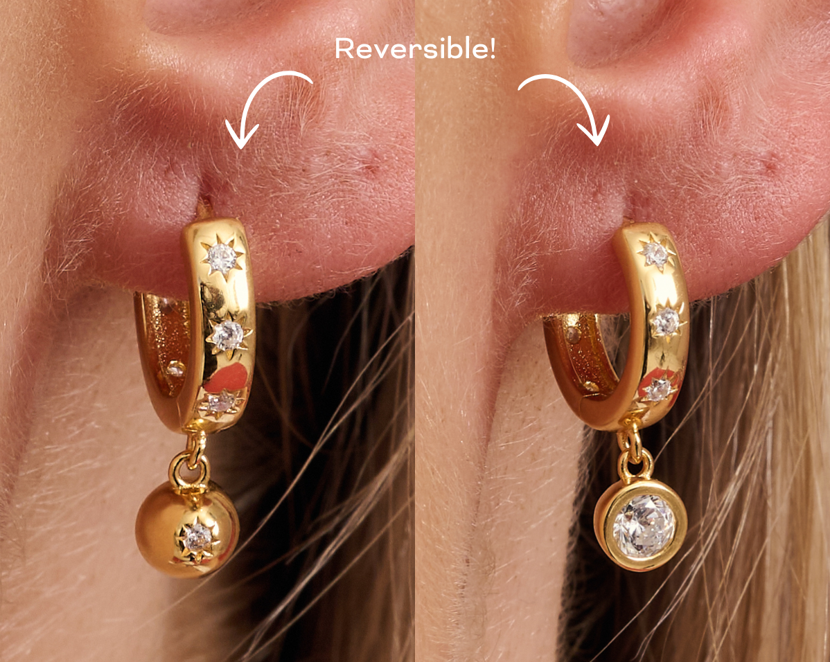 Meet the Arie Reversible Bezel Starburst Hoops—versatility at its finest! These unique hoops are reversible, offering two stunning ways to wear them.