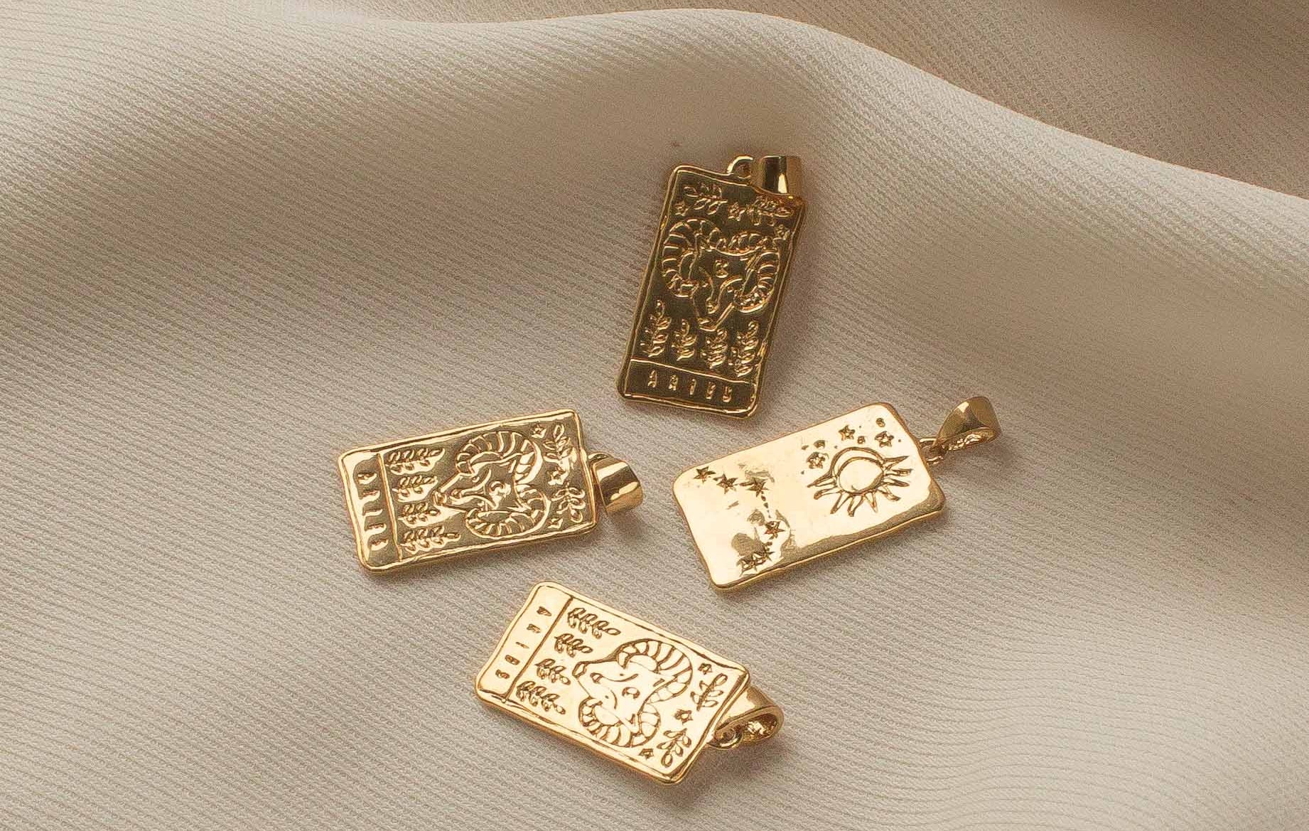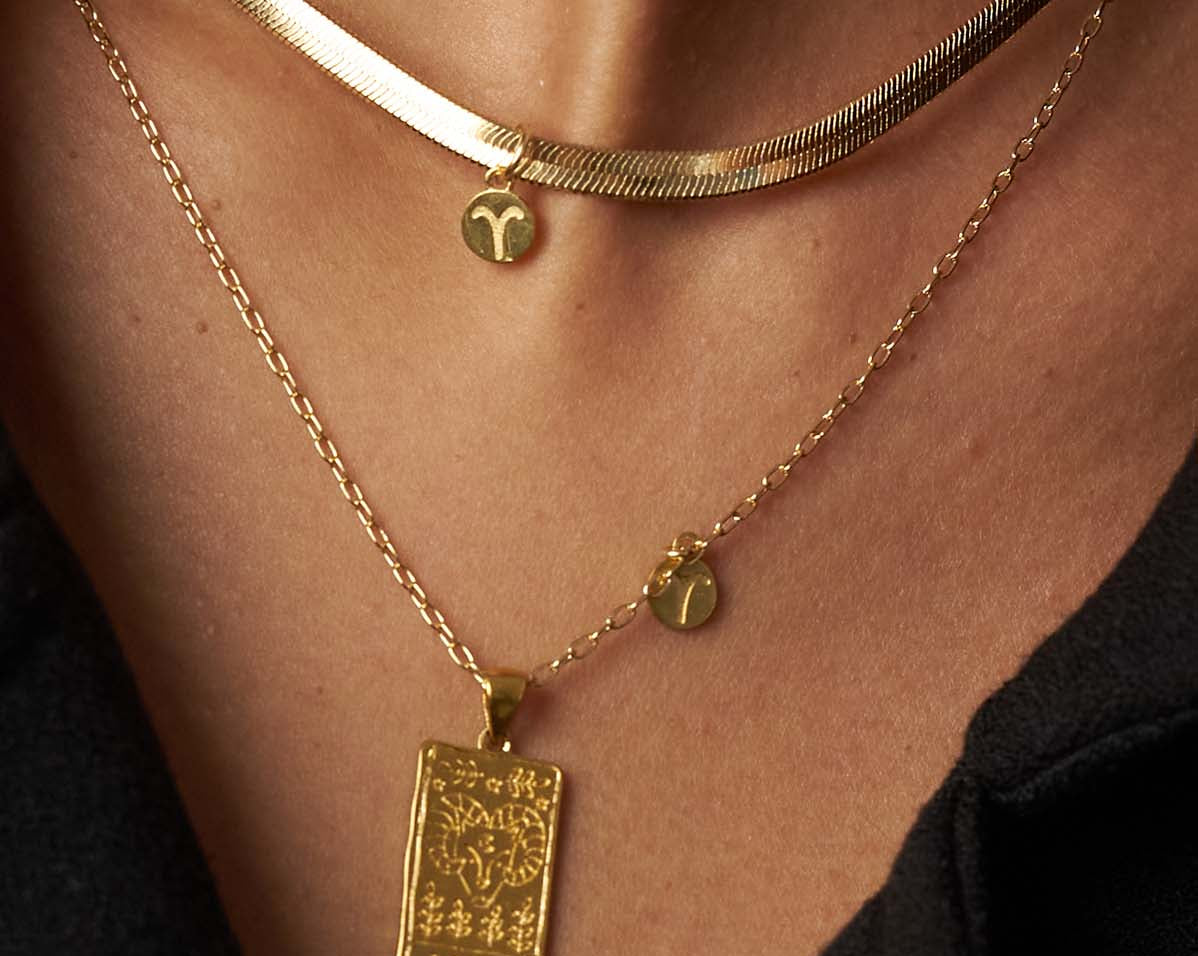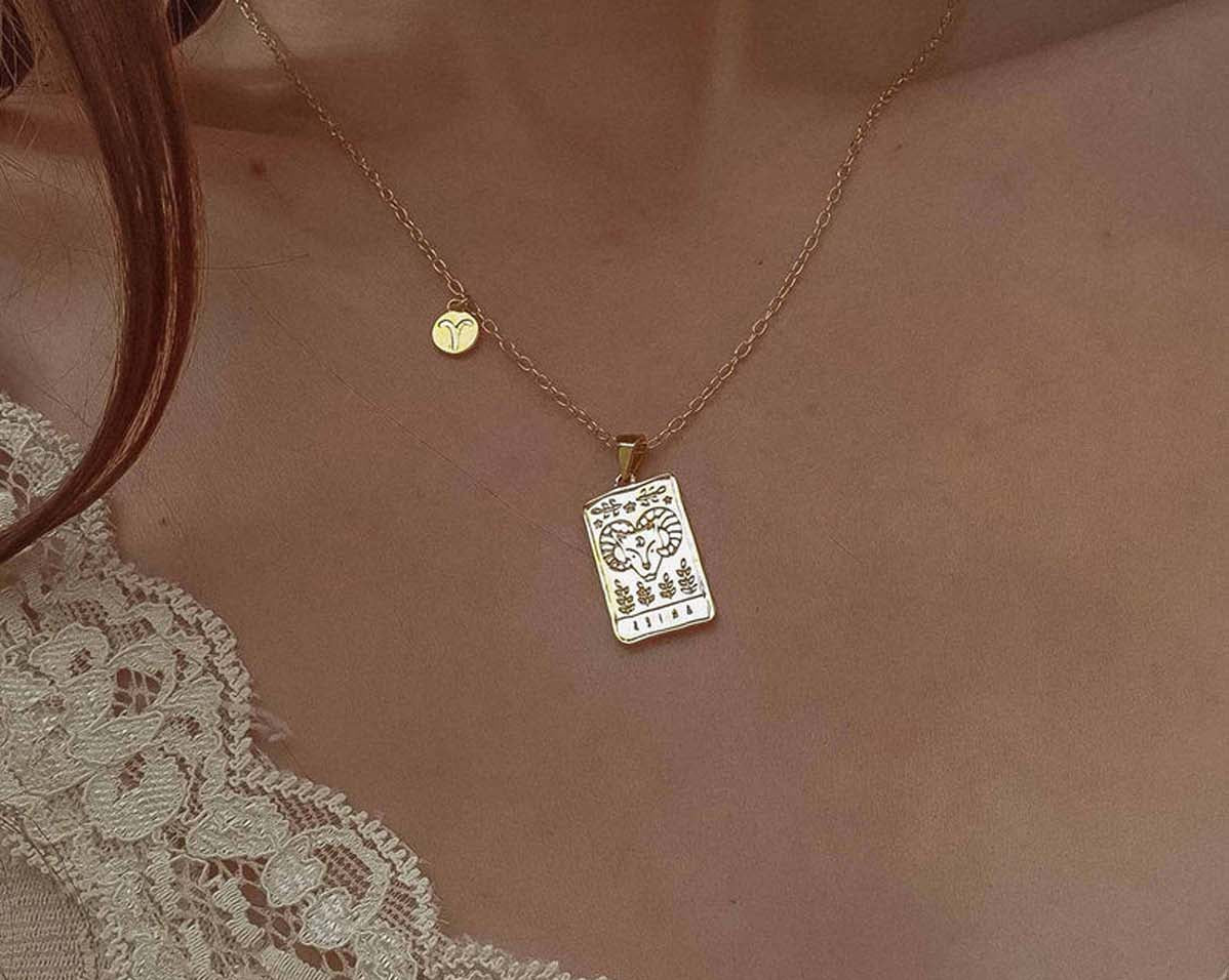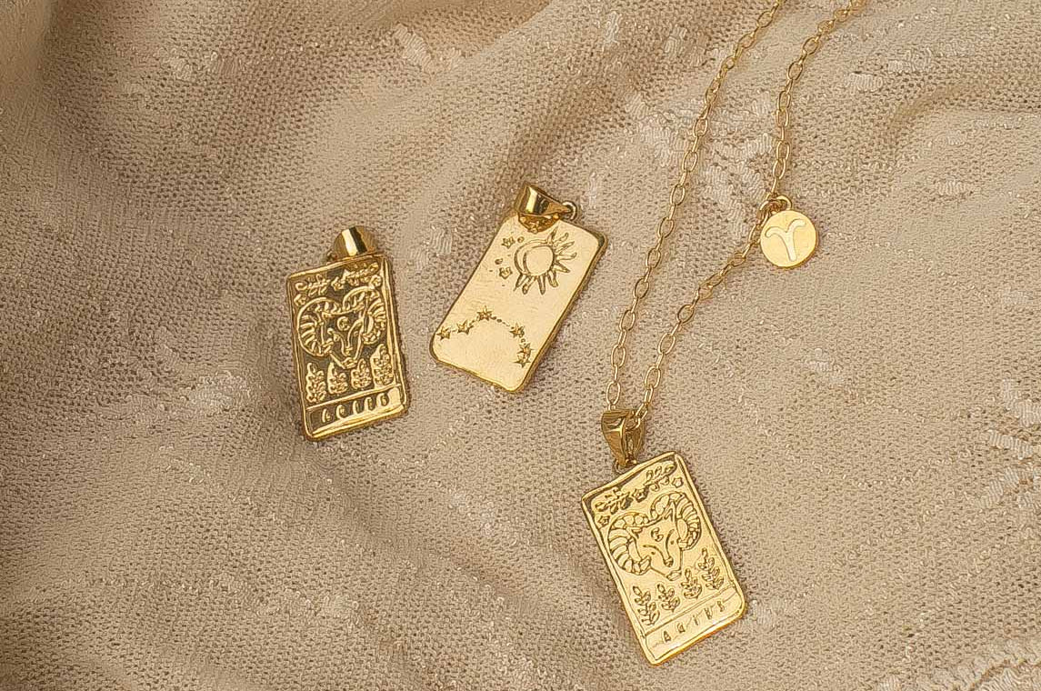 The collection features 12 pendant necklaces with a double-sided tarot-inspired star sign pendant, and a customizable mini star sign charm. Inspired by tarot cards, and the magical world of astrology, the 12 necklaces are customizable with two signs – sun and moon signs – or those with signs on the cusp.