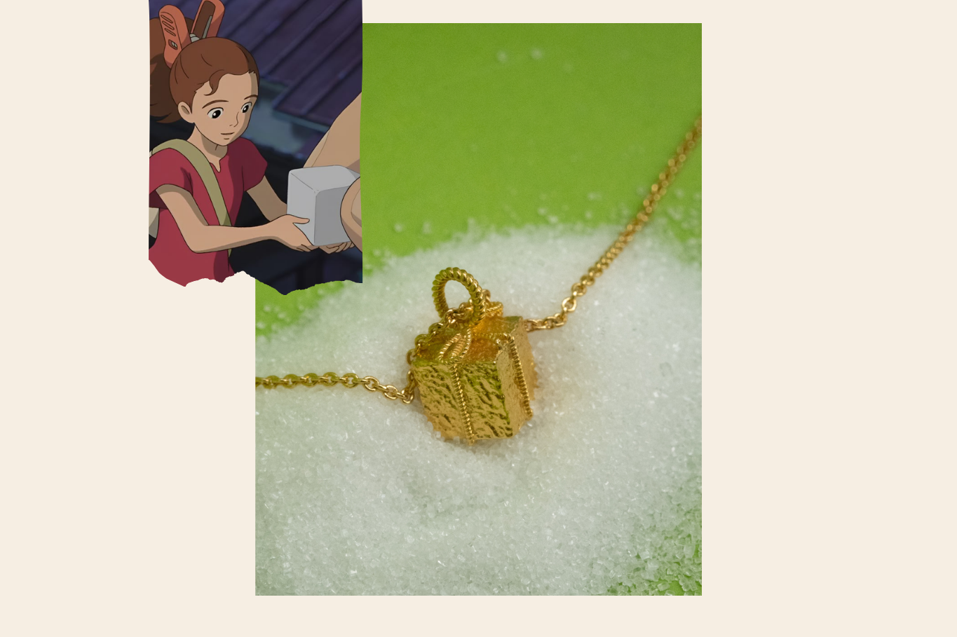 A gift, a moment and a quiet connection between two worlds. When Sho offers Arrietty a sugar cube, it’s more than just an exchange, but rather a bridge between the seen and the unseen. Small but significant, this necklace captures that fleeting moment of kindness, the weight of something so simple yet holds the sweetest gesture.