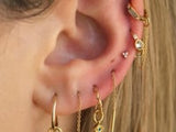Inspired by the desire to have beautiful and high quality earrings for all our ear piercings, the Piercing Collection is suitable for fresh and healed piercings. With lobe friendly hoops and helix friendly ball back studs, the Piercing Collection can cater for fresh and healing piercings with our 14k solid gold earrings whilst our classic 18k gold fill earrings can be worn in all healed ear piercings. Made ethically in our factories in Mumbai, India, each Piercing Collection piece has been carefully crafted by our artisans just for you.