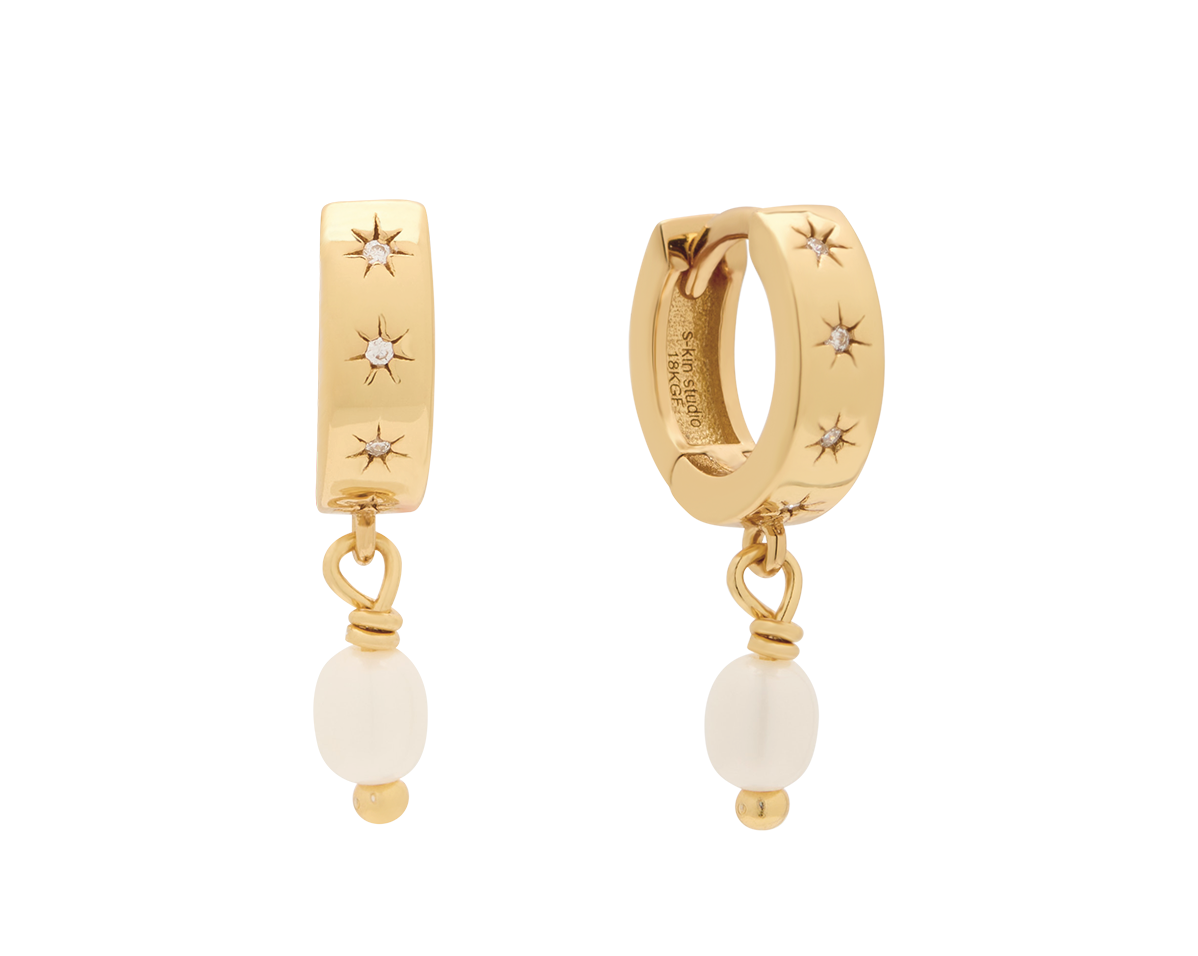 Add a sparkle with this latest addition to the range of starburst hoops inspired by our original Aurelia huggie hoops. Aurelia features a click fasten hoop mechanism, with four gemstones set on the front side of each hoop. Perfect to wear on her own or styled with the original Aurelia hoops.