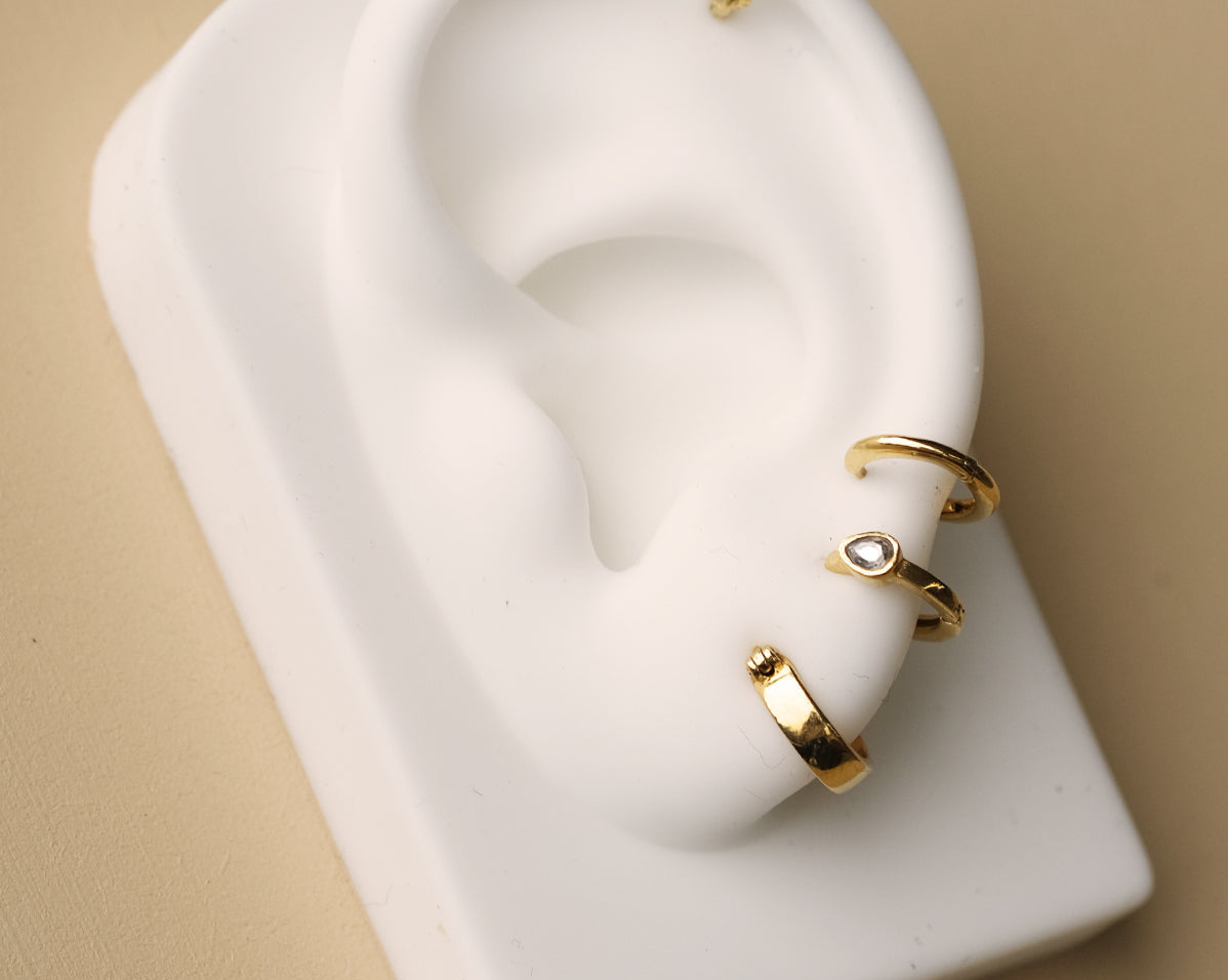 These petite hoops are perfect for creating a timeless everyday ear stack that will compliment any look! Perfect for healed piercings these pieces will sit snuggly in your love and helix piercings.