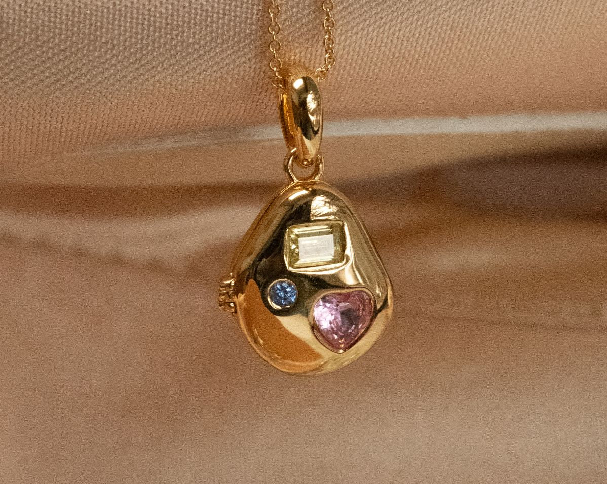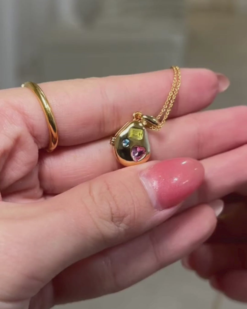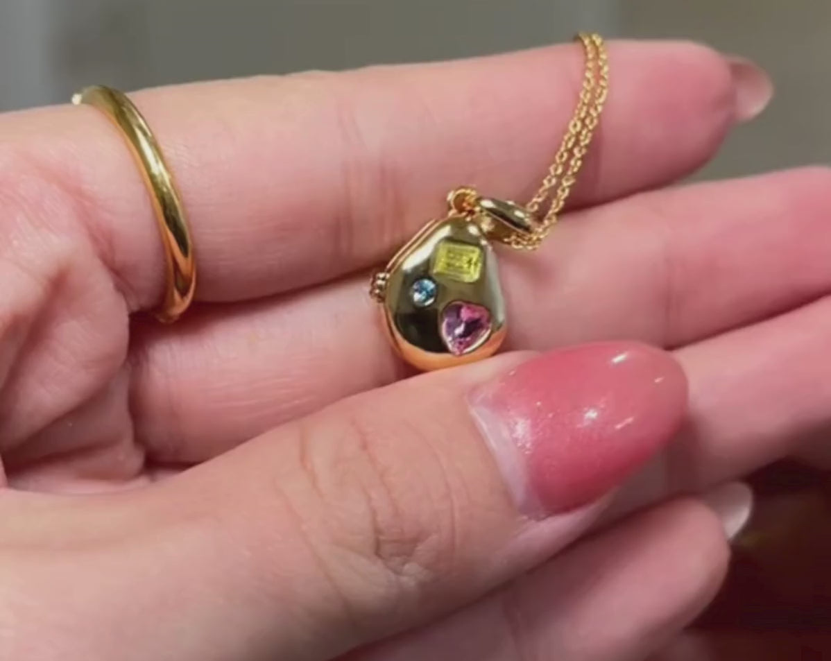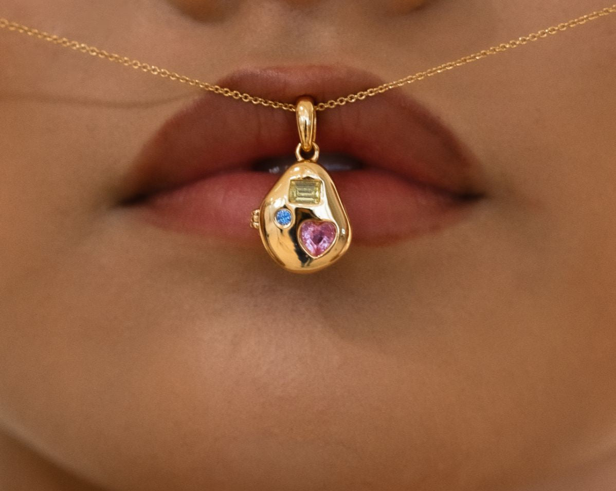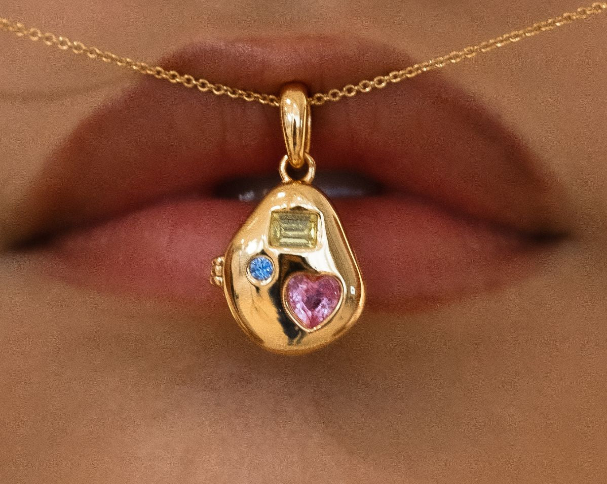 Meet Billie, the locket your inner child deserves. She’s got that organic, pebble-inspired silhouette with playful pops of gemstone sparkle, hiding a secret hidden message of your choosing inside. Nostalgic with an attitude, Billie is your pocket-sized rebellion disguised as jewellery.