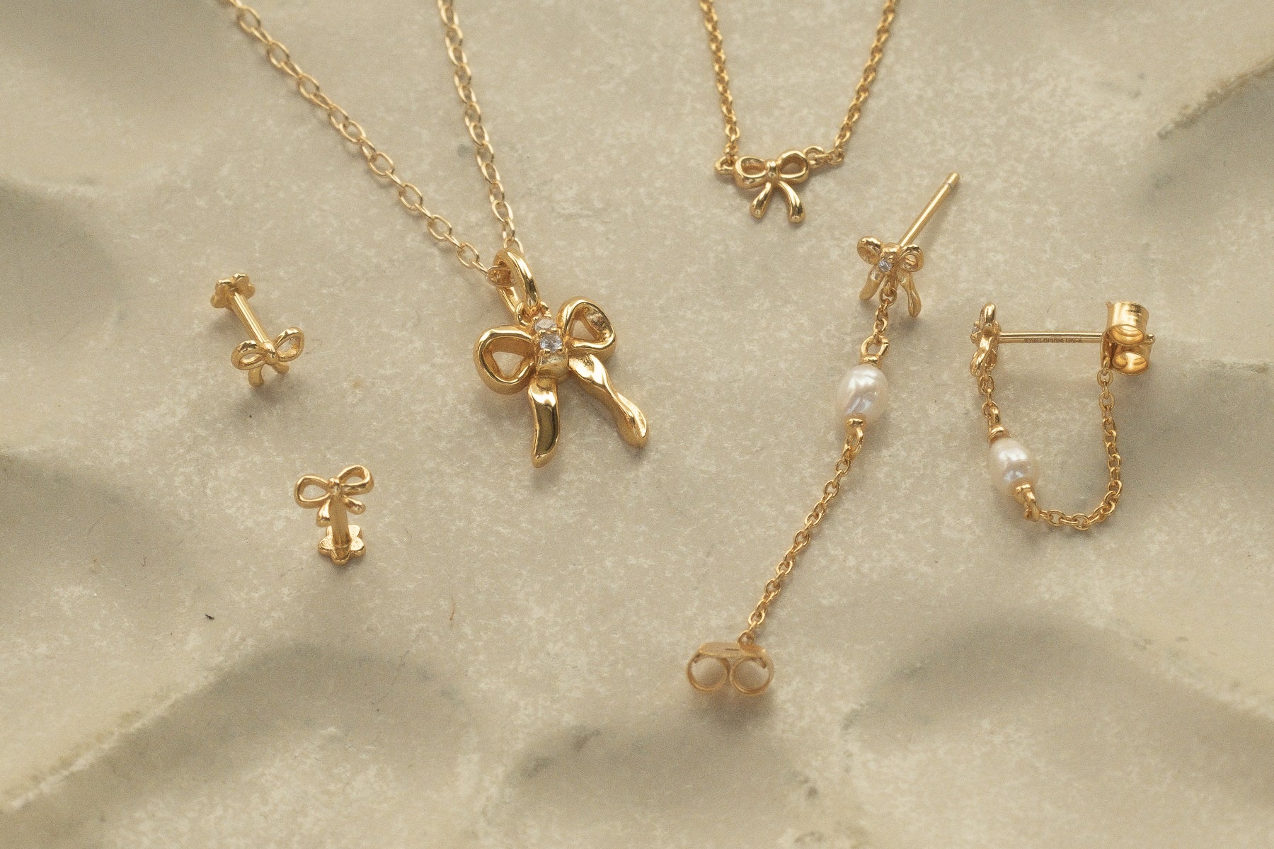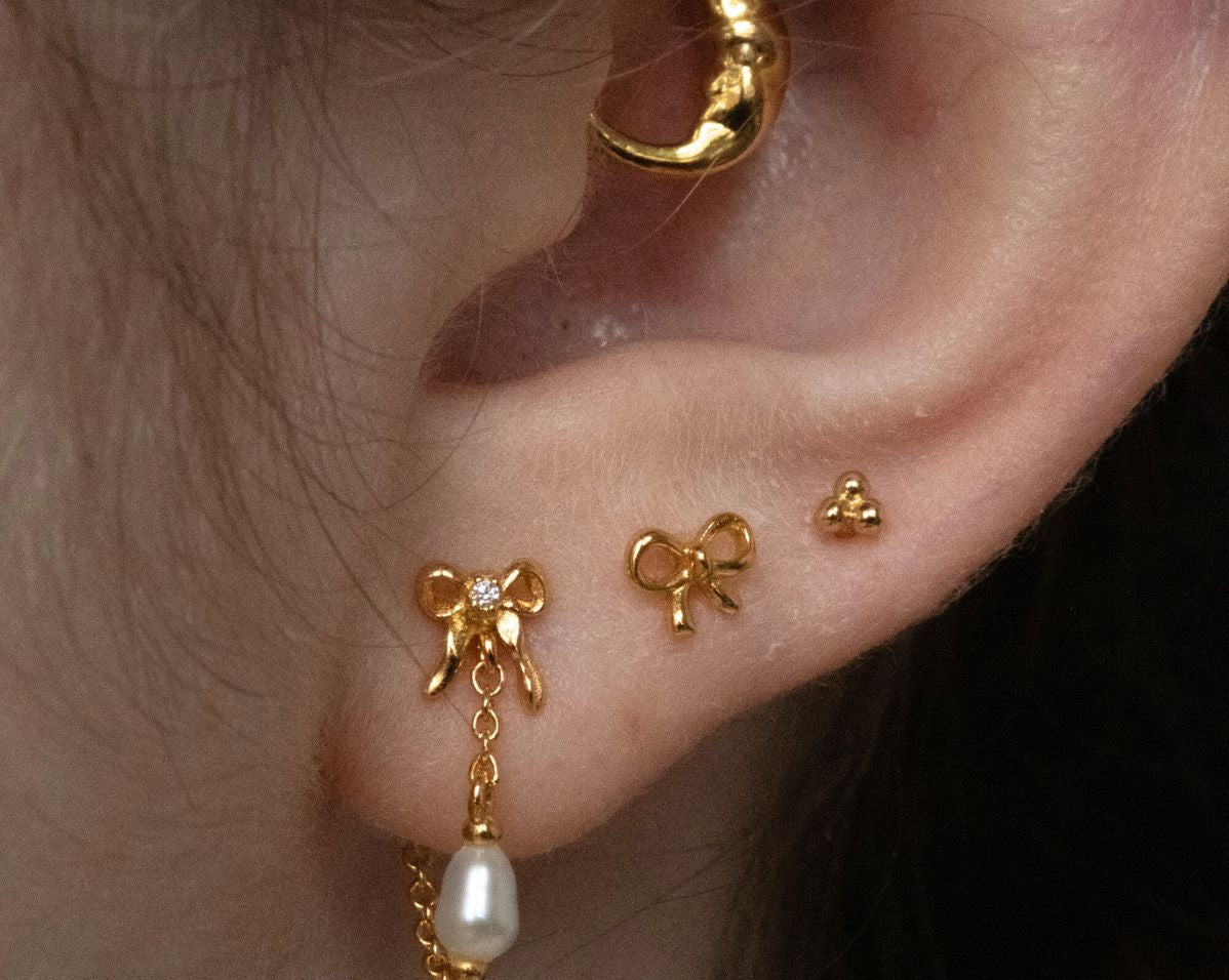 Inspired by all our pink dreams, the Bow collection features the childhood favourite accessory in a playful yet timeless way. Made in 18K Gold Fill and Sterling Silver, these everlasting pieces will make you squeal 'so cute!'