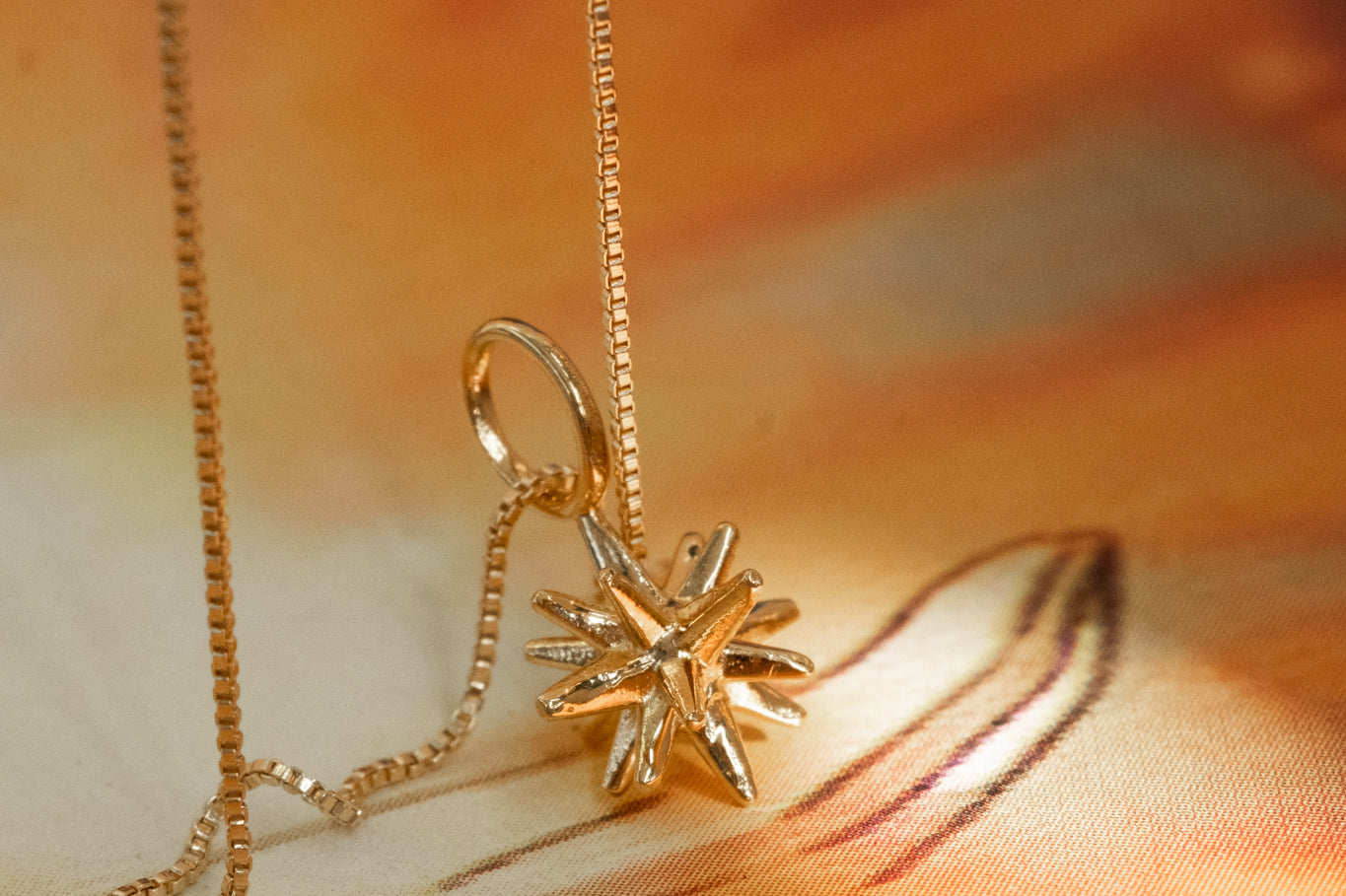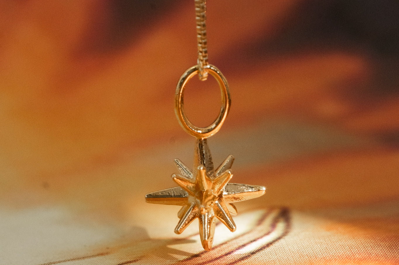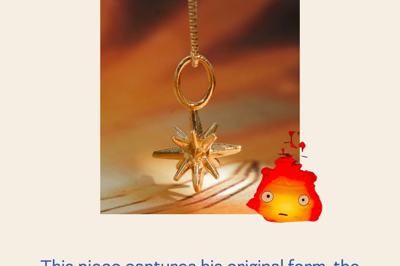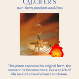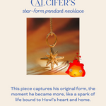 A little fire demon to keep close! Before Calcifer was a burning flame, he was a falling star. This necklace captures his original form, the moment he became more, like a spark of life bound to Howl’s heart and home.