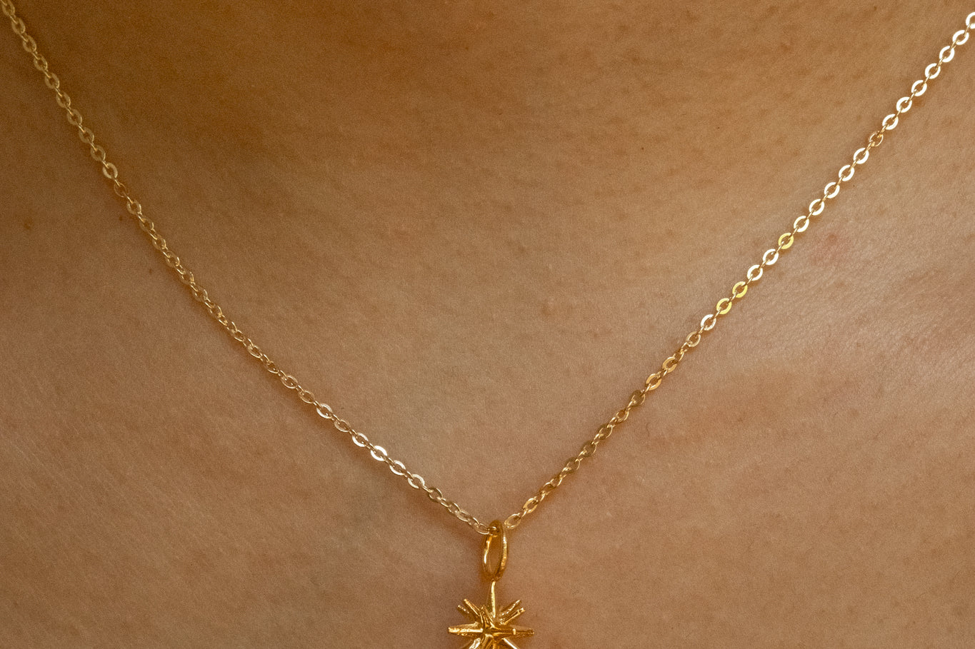 - Adorned on a 16’’ Rolo Chain, 18K Gold Fill