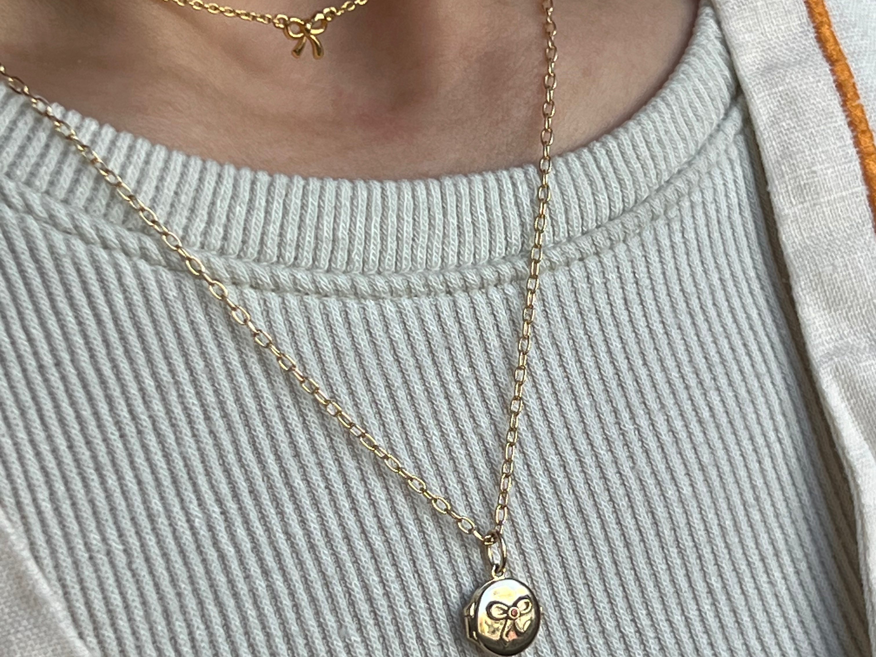 Meet the Carla Bow Engravable Locket Pendant – the perfect way to keep your cherished memories close! This tiny locket is like a stylish vault where you can store small keepsakes that mean a lot to you.