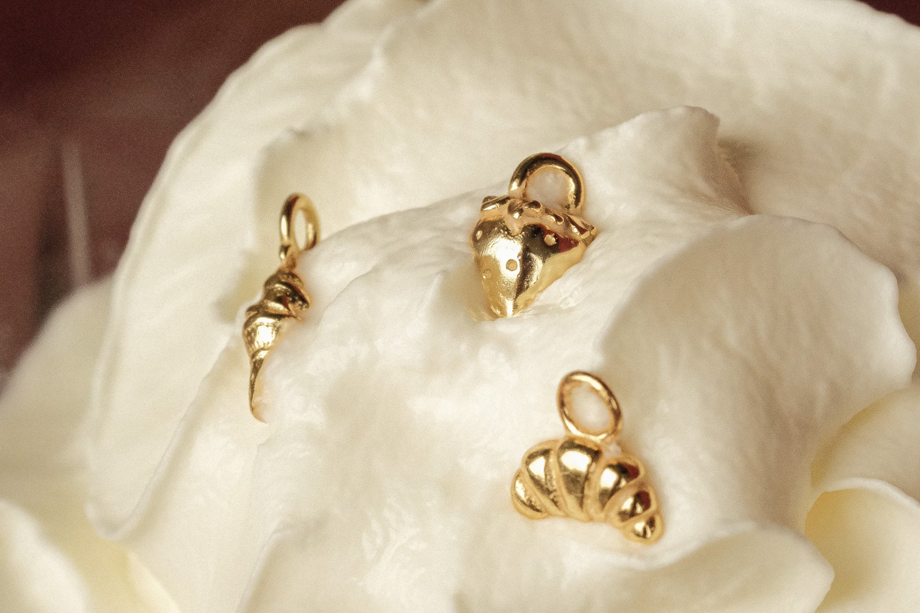 We love our carbs, so we couldn't go past designing a croissant charm for our Food Charms collection. Featuring a perfectly asymmetrical croissant, you'll want to book a ticket to Paris when you see these. Each charm comes with a removeable bail, so you can wear each as a pendant on a necklace, or without as a charm for your earring.