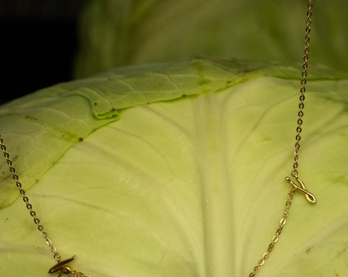 - Note: This bespoke necklace is delicate and requires care to avoid damage. We do not recommend sleeping in or wearing items that can tug, snag or damage the necklace. Please be aware that any damage of this nature is not covered by warranty.