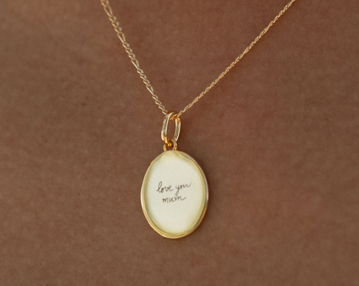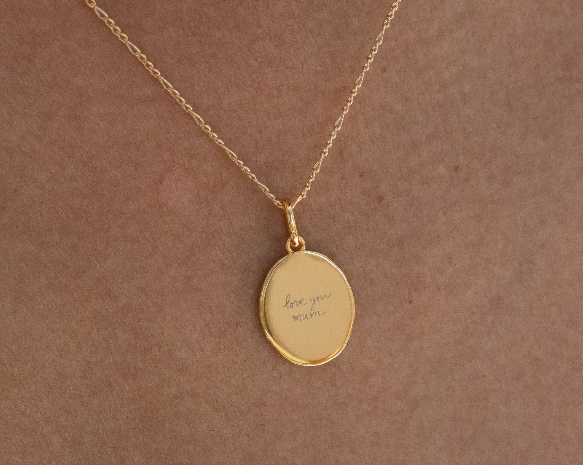 Whether it’s initials, a short phrase, or a secret word only you understand, the Custom engraved oval necklace celebrates quiet meaning and personal connection.