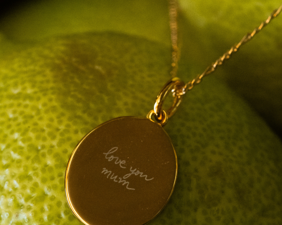 required Step 1 Choose a product. This step is requiredInspired by the humble fruit sticker—a tiny label often overlooked but full of character—this pendant turns everyday nostalgia into elegant storytelling. Its clean, round form mimics the shape of fruit stickers from your childhood, reimagined in fine jewelry. But there’s more than meets the eye: this pendant hides a message in Morse code, ready to be personalized just for you.
