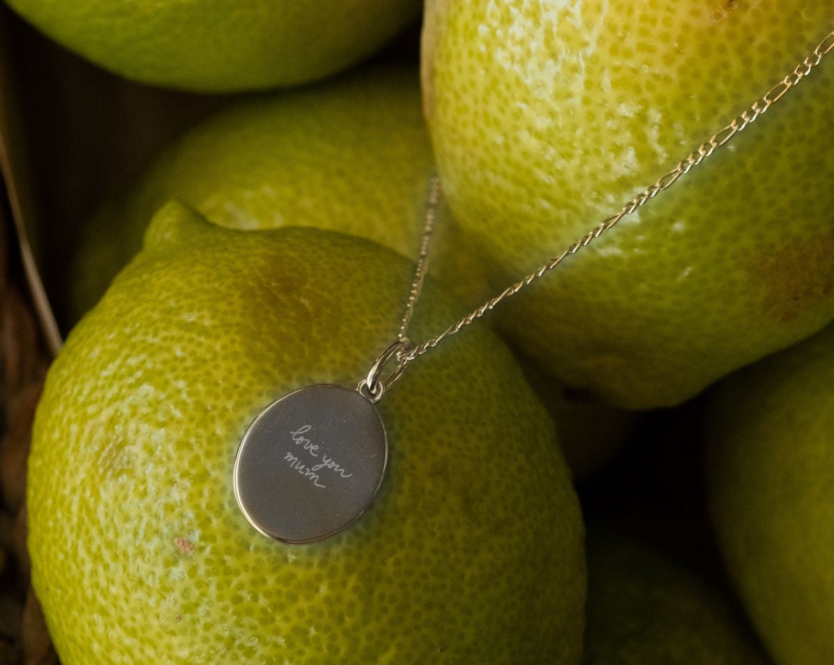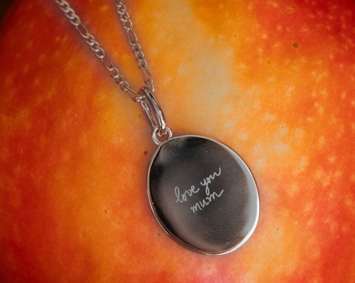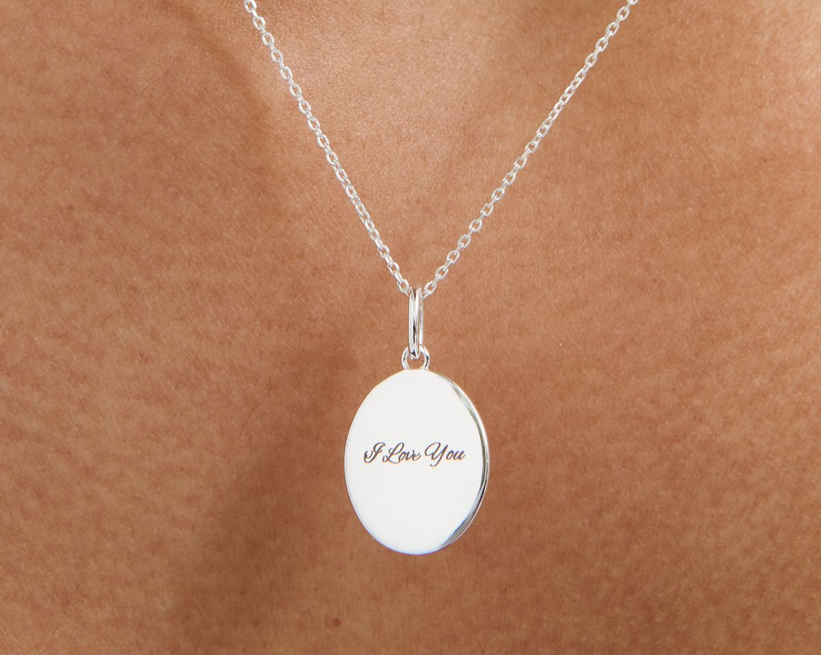 Custom Engraved Oval Pendant - Sterling Silver
