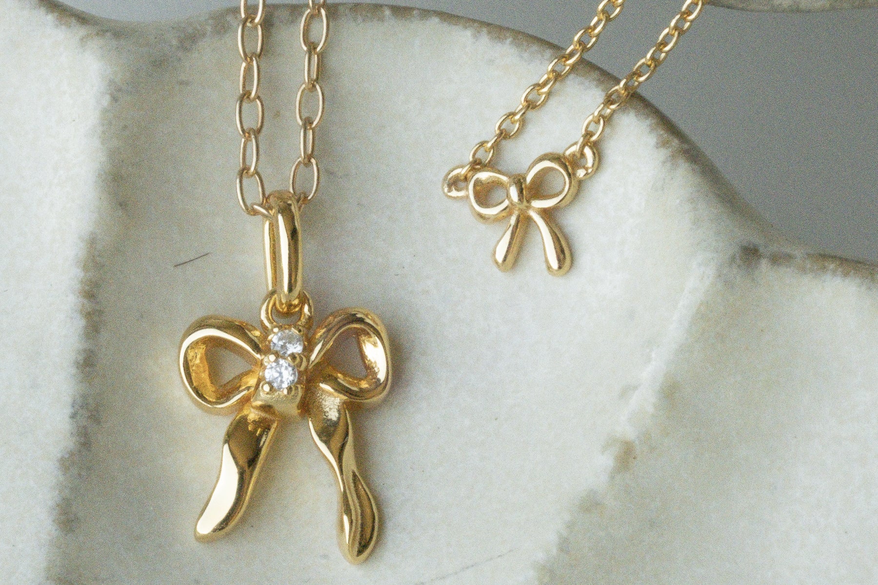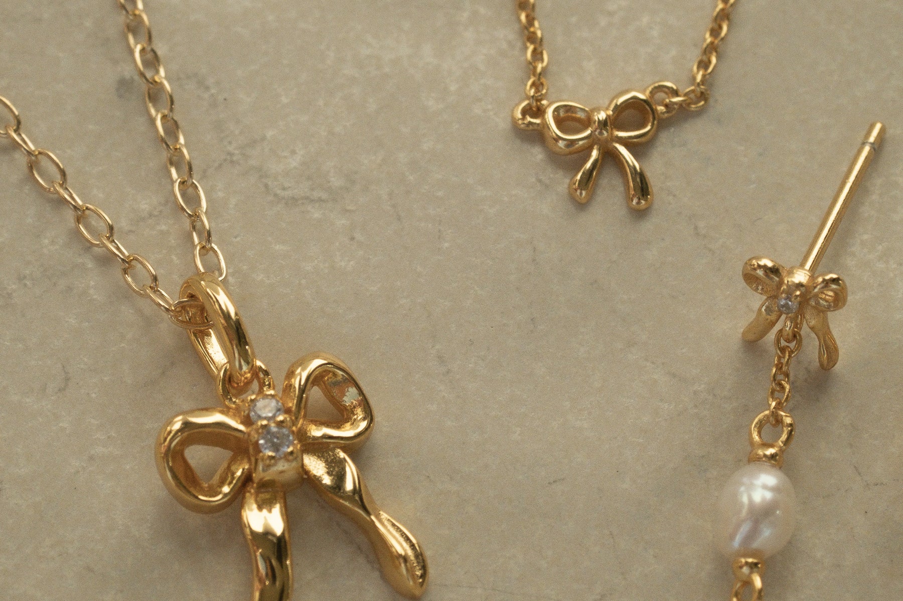 Inspired by all our pink dreams, the Bow collection features the childhood favourite accessory in a playful yet timeless way. Made in 18K Gold Fill and Sterling Silver, these everlasting pieces will make you squeal 'so cute!'