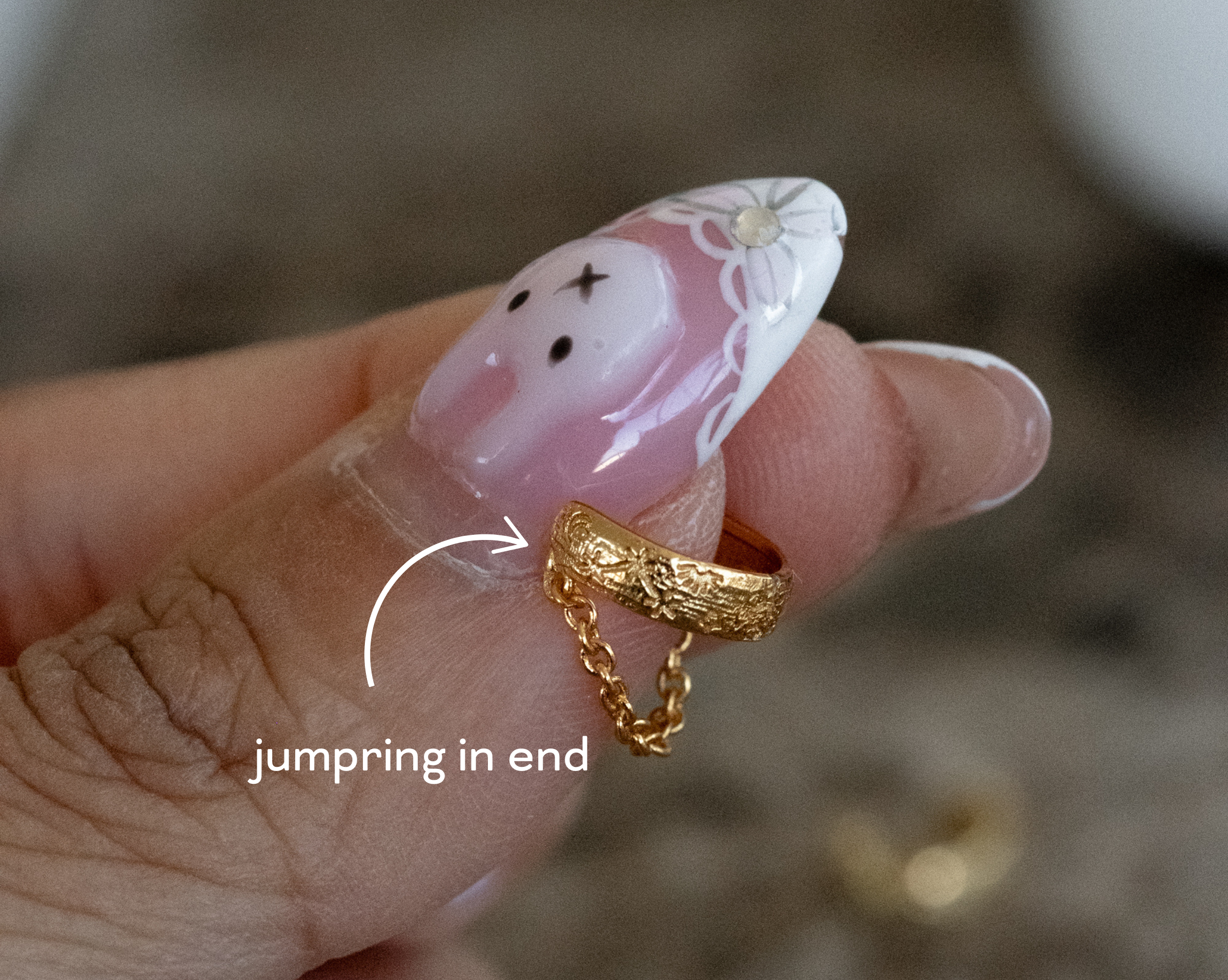 - Jump ring is placed in end