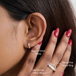 Sleek and fluid, Elena is the minimalist’s answer to playful design. With soft, wavy curves in a slim band, she’s delicate but never boring - perfect for stacking or wearing alone when you want subtle movement in your everyday look.