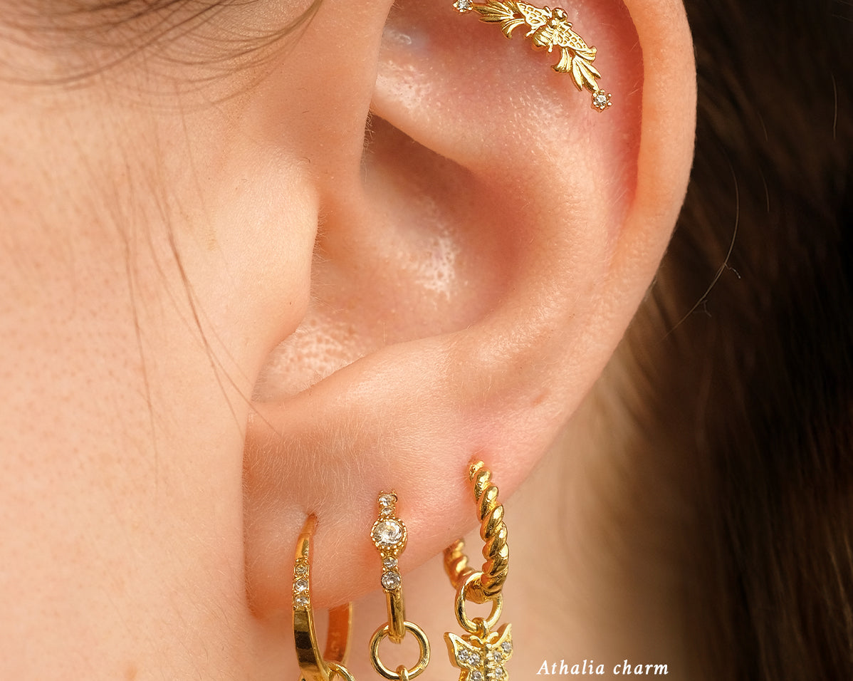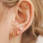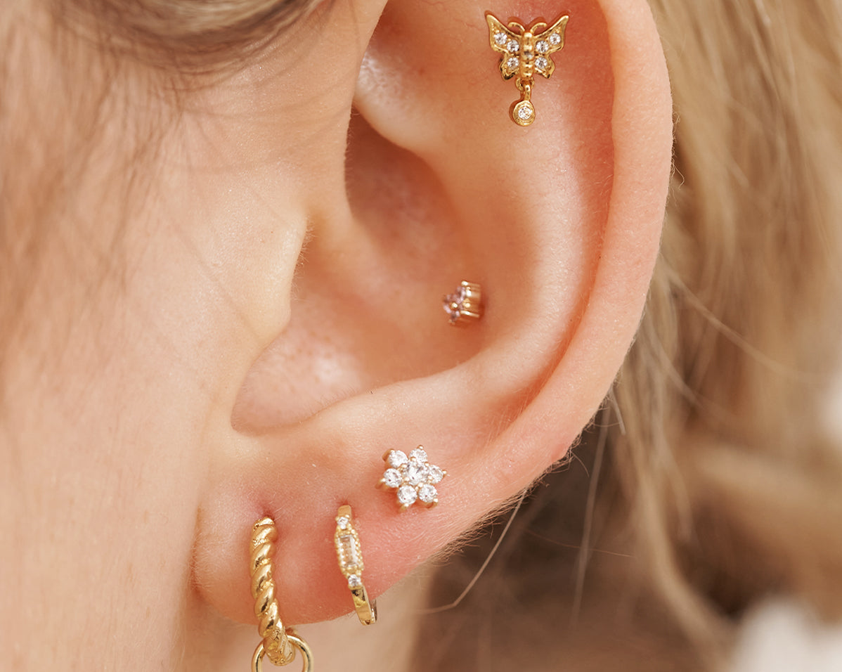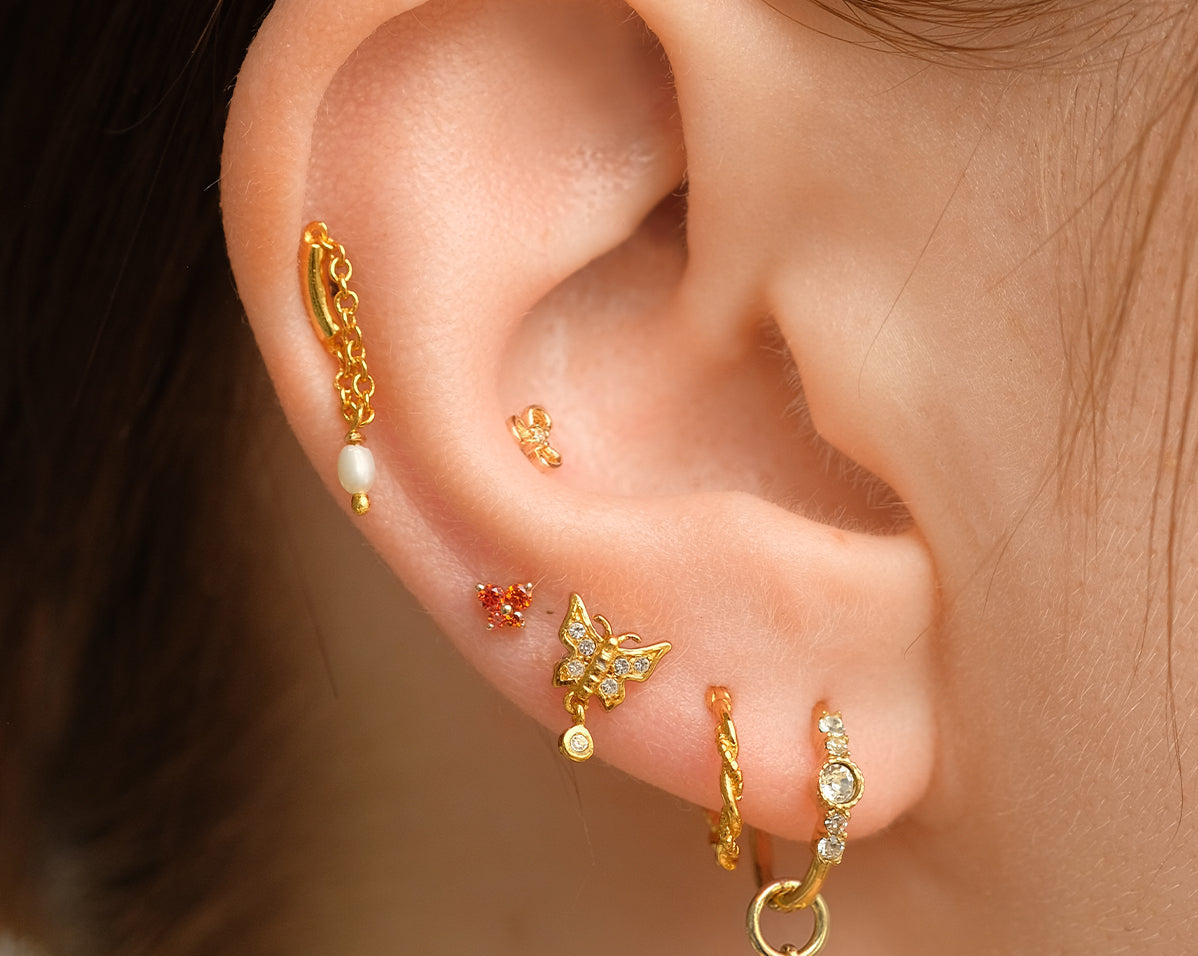 Inspired by the desire to have beautiful and high quality earrings for all our ear piercings, the Piercing Collection is suitable for fresh and healed piercings. With lobe friendly hoops and helix friendly ball back studs, the Piercing Collection can cater for fresh and healing piercings with our 14k solid gold earrings whilst our classic 18k gold fill earrings can be worn in all healed ear piercings. Made ethically in our factories in Mumbai, India, each Piercing Collection piece has been carefully crafted by our artisans just for you.