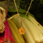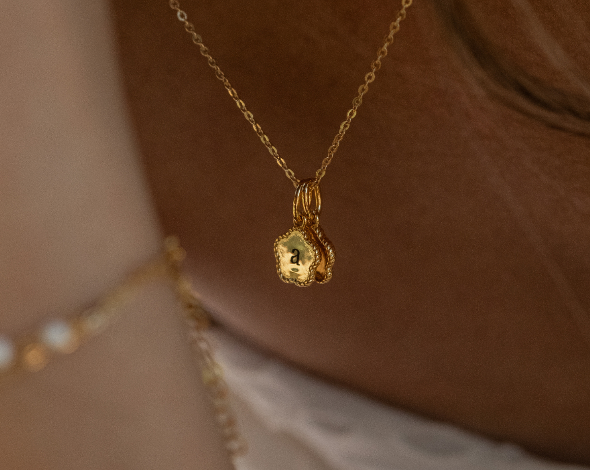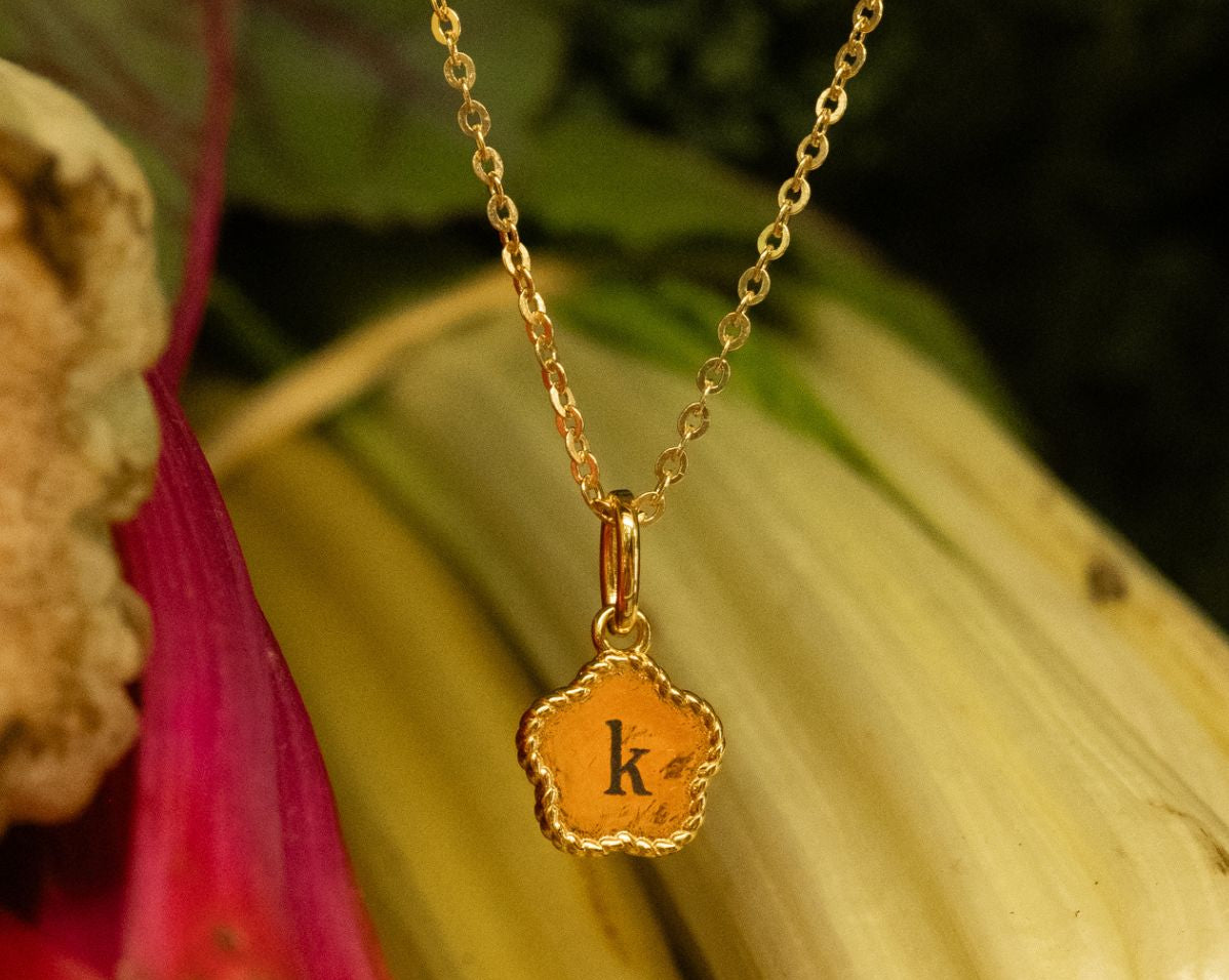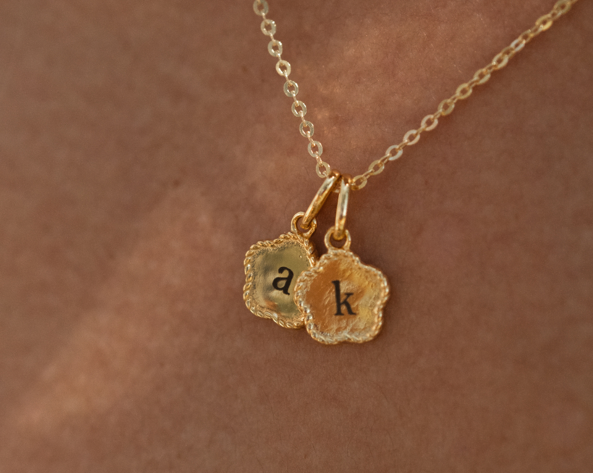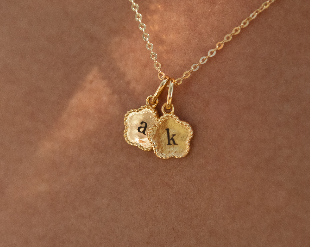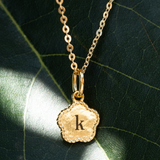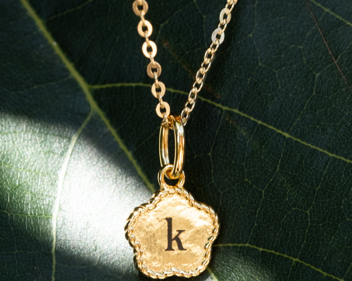 The flower pendant is ready to be engraved with a single initial that holds meaning to you—whether it’s your own, a loved one’s, or someone you want to keep close.