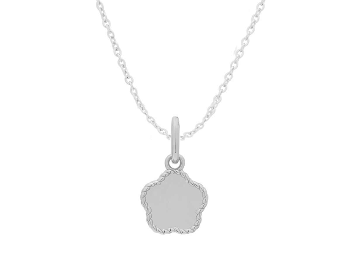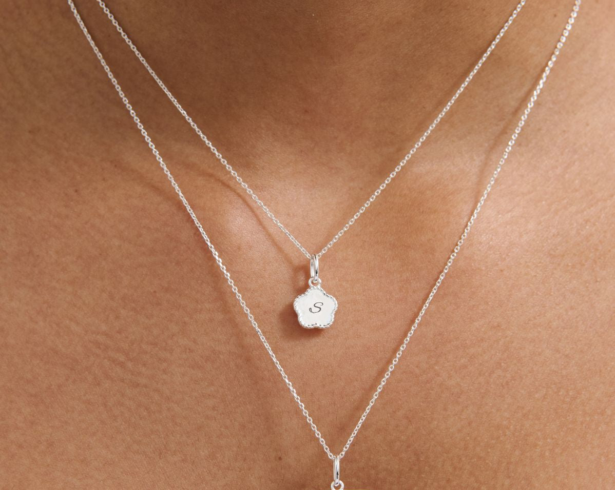 required Step 1 Choose a product. This step is requiredDelicate, personal, and full of charm the Flower Engraved Initial Necklace draws inspiration from nature’s simplest symbol of love and growth: the flower. Its soft, petal-shaped outline is framed by a fine 1mm braided edge, giving it a sweet yet elegant finish that catches the light from every angle.