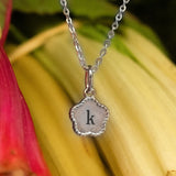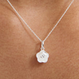 Flower Engraved Initial Necklace - Sterling Silver