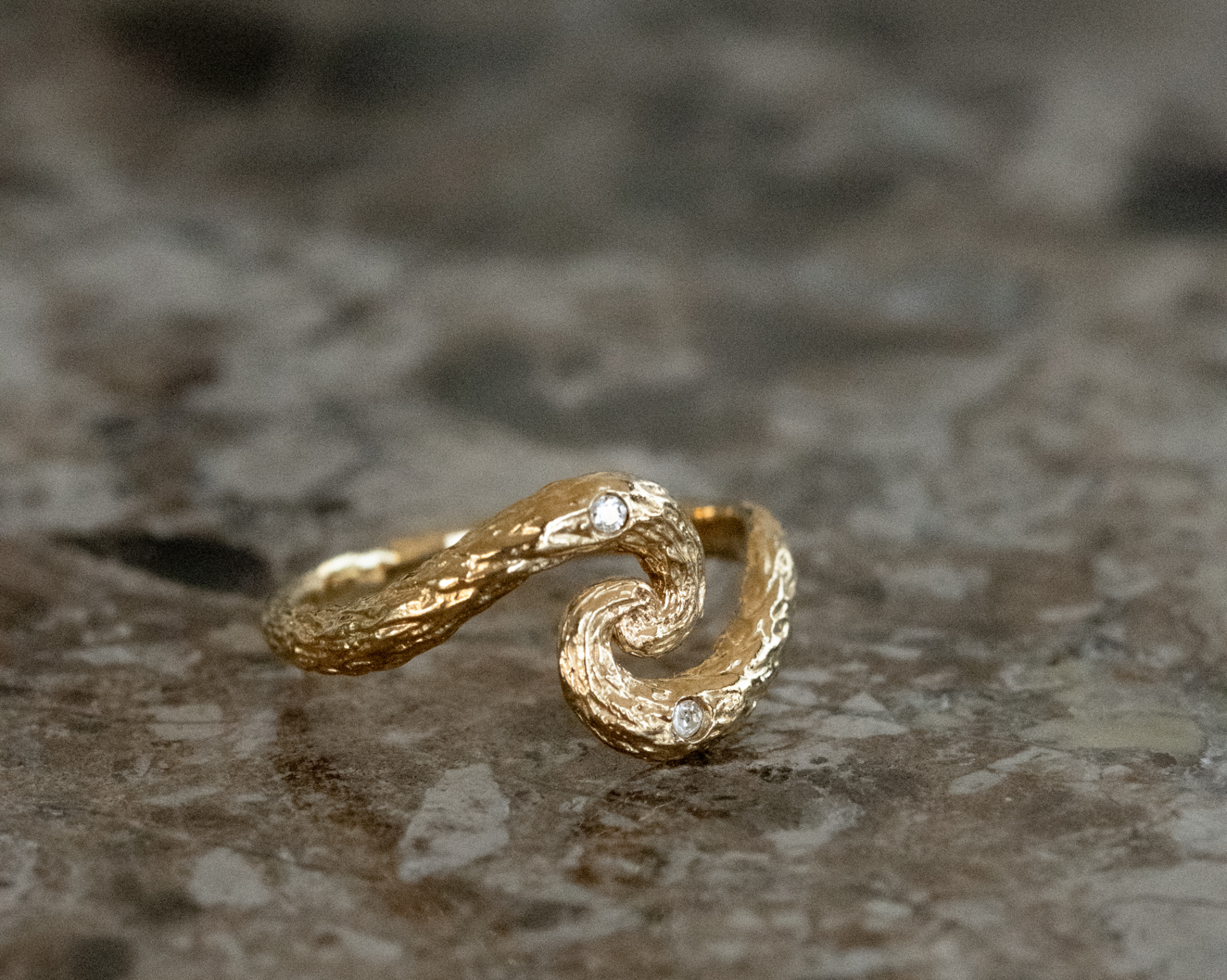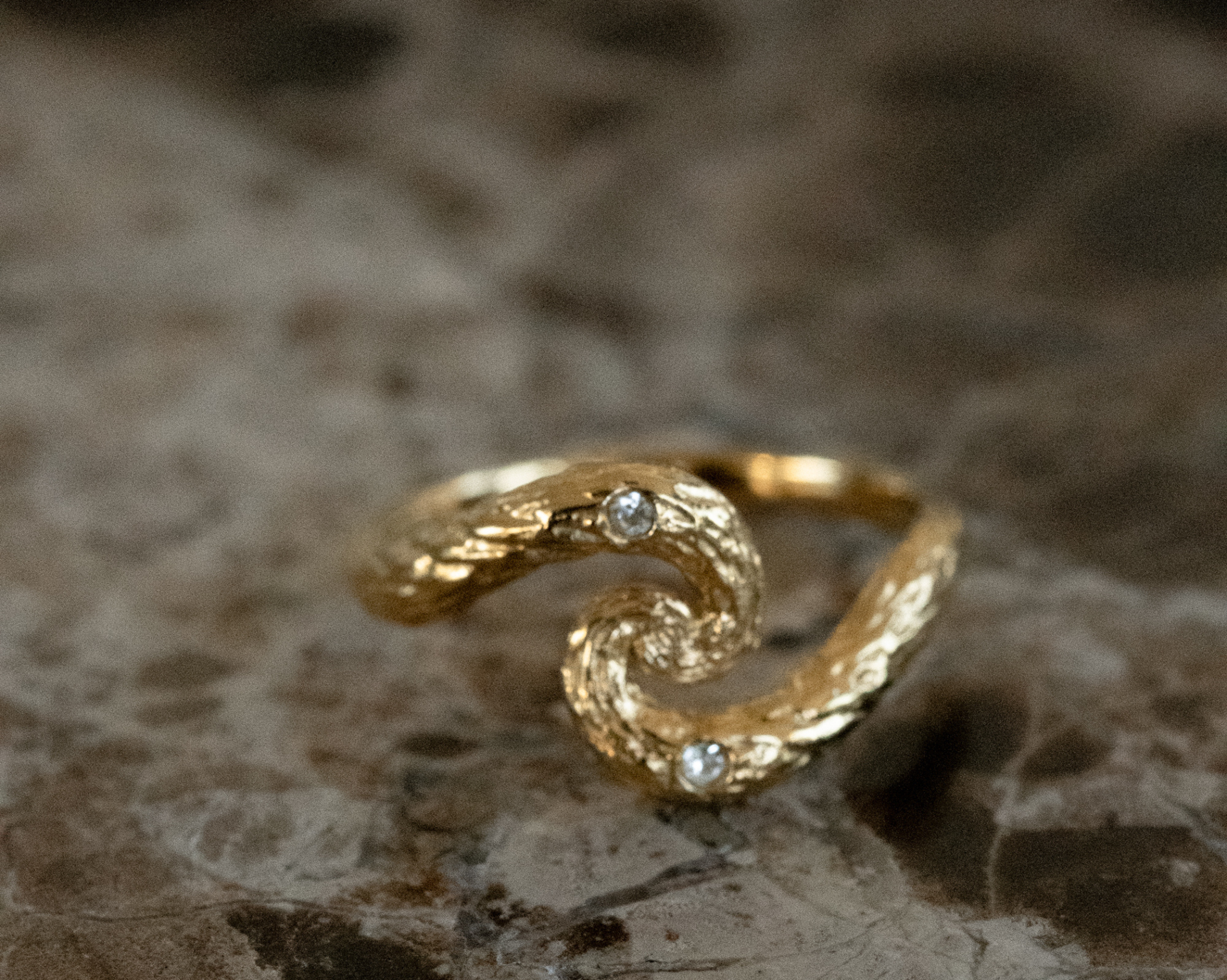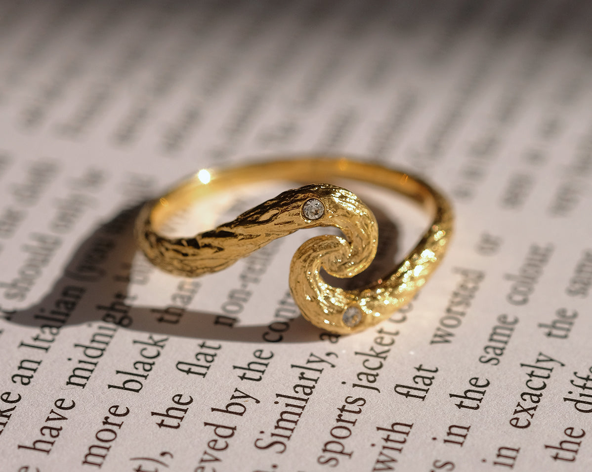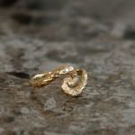 Inspired by Paola's favourite quote ''Whatever causes night in our souls may leave stars'' Victor Hugo, this textured wavy ring reminds us of the swirls of the galaxy with two tiny cubic zirconia's to represent the stars.