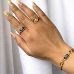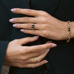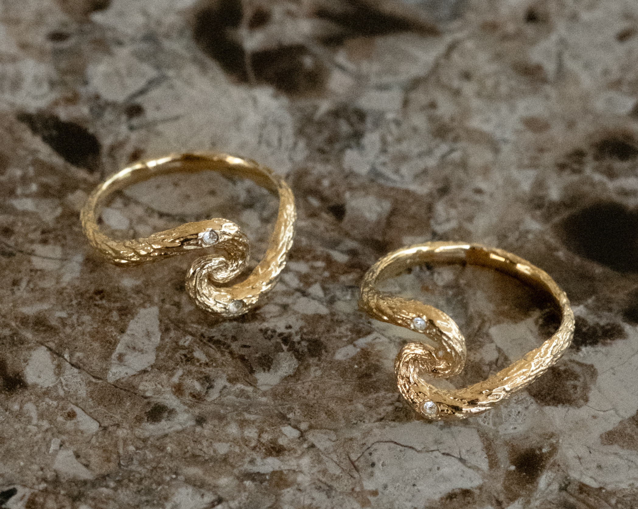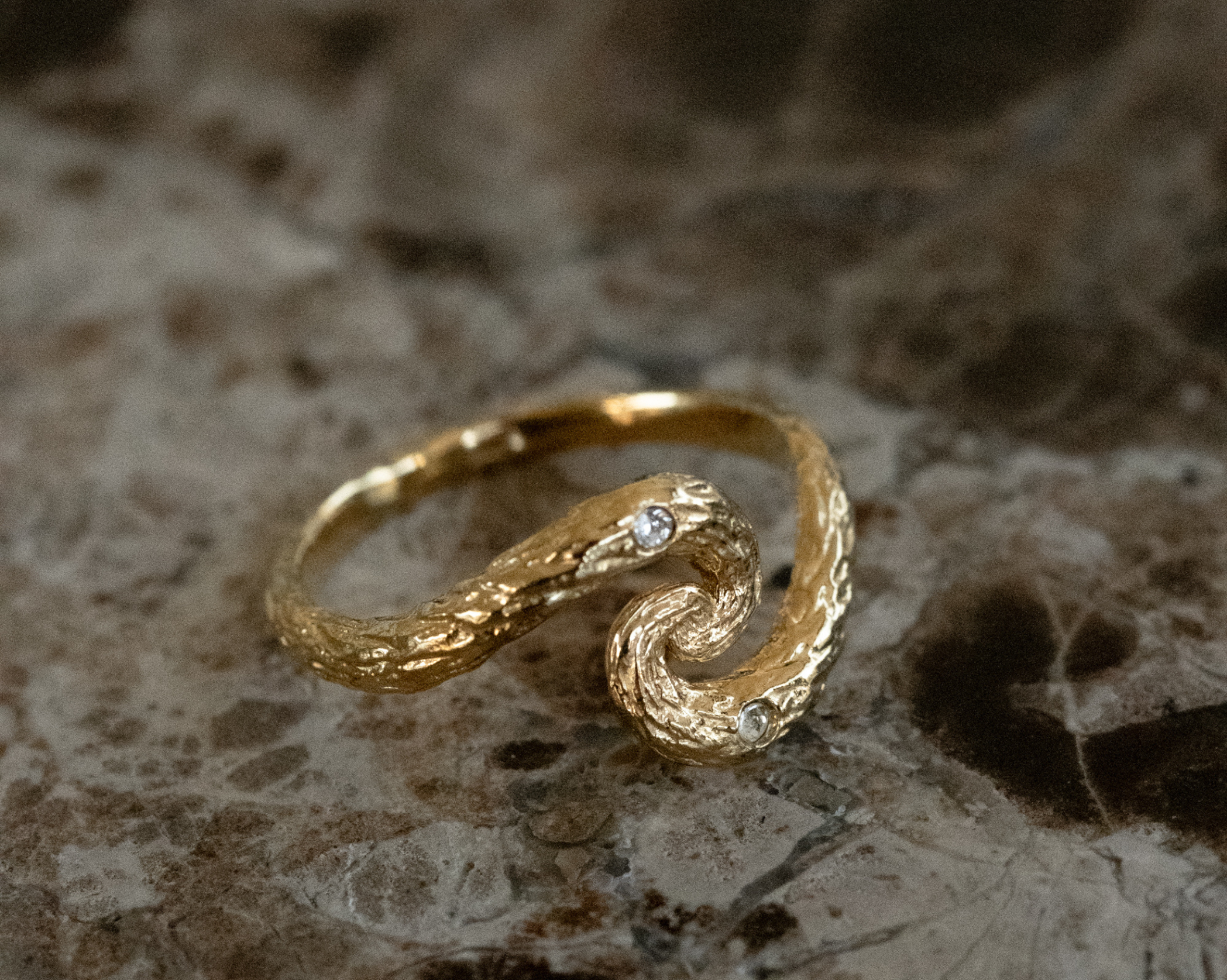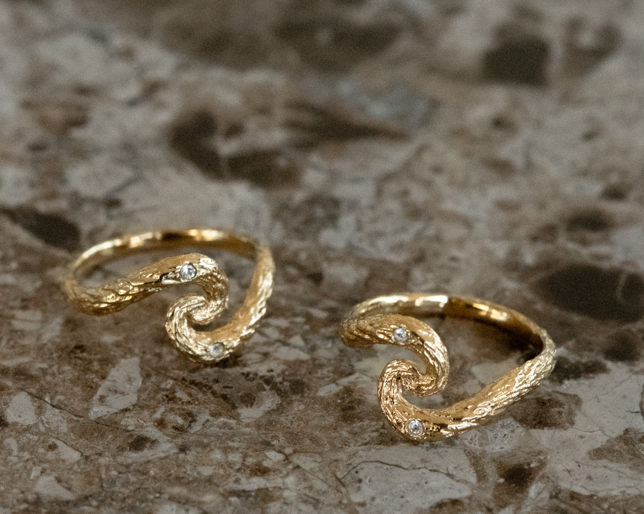 Inspired by Paola's favourite quote ''Whatever causes night in our souls may leave stars'' Victor Hugo, this textured wavy ring reminds us of the swirls of the galaxy with two tiny cubic zirconia's to represent the stars.