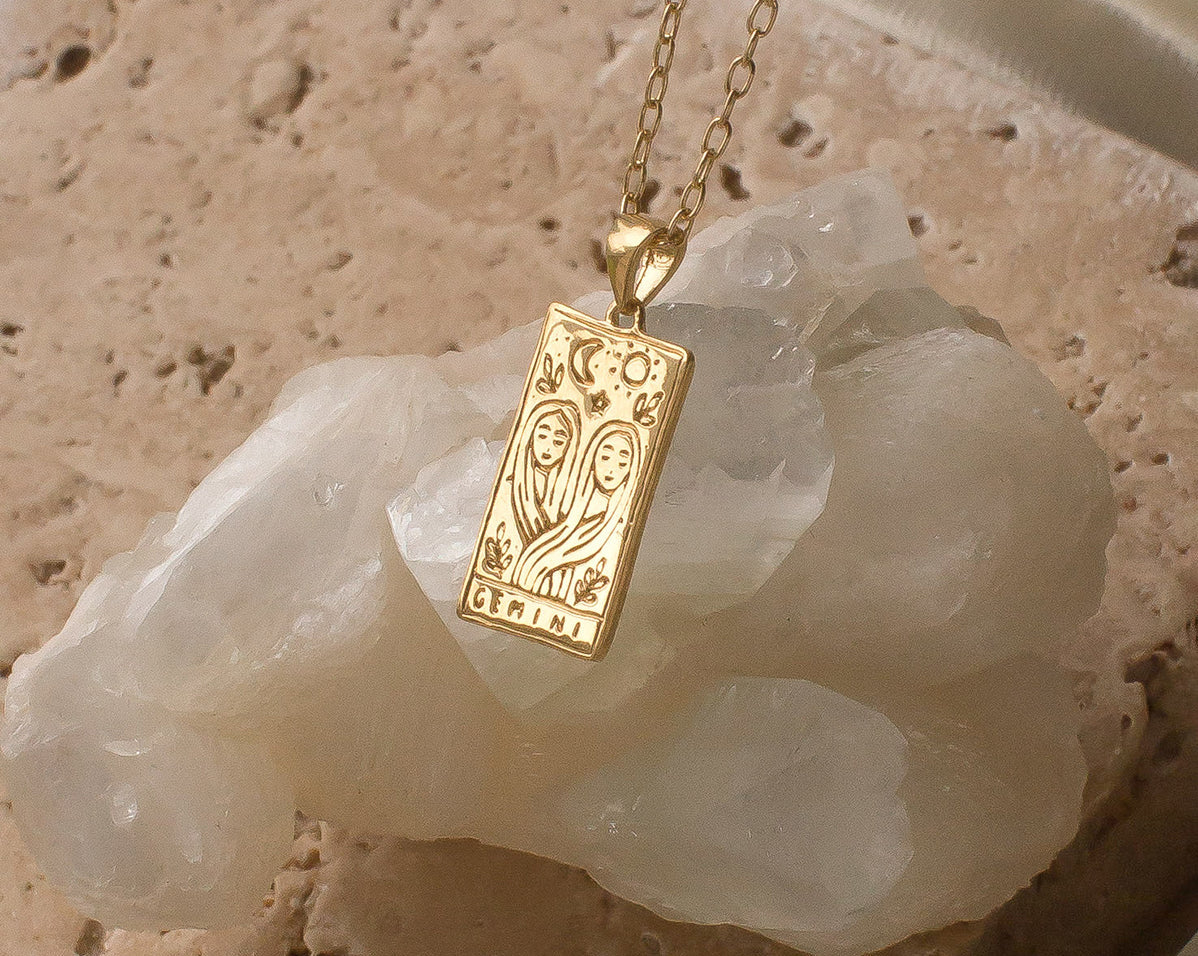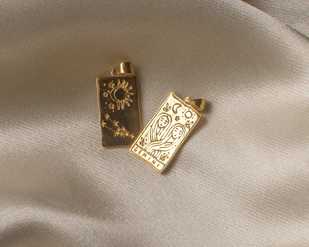 The collection features 12 pendant necklaces with a double-sided tarot-inspired star sign pendant, and a customizable mini star sign charm. Inspired by tarot cards, and the magical world of astrology, the 12 necklaces are customizable with two signs – sun and moon signs – or those with signs on the cusp.