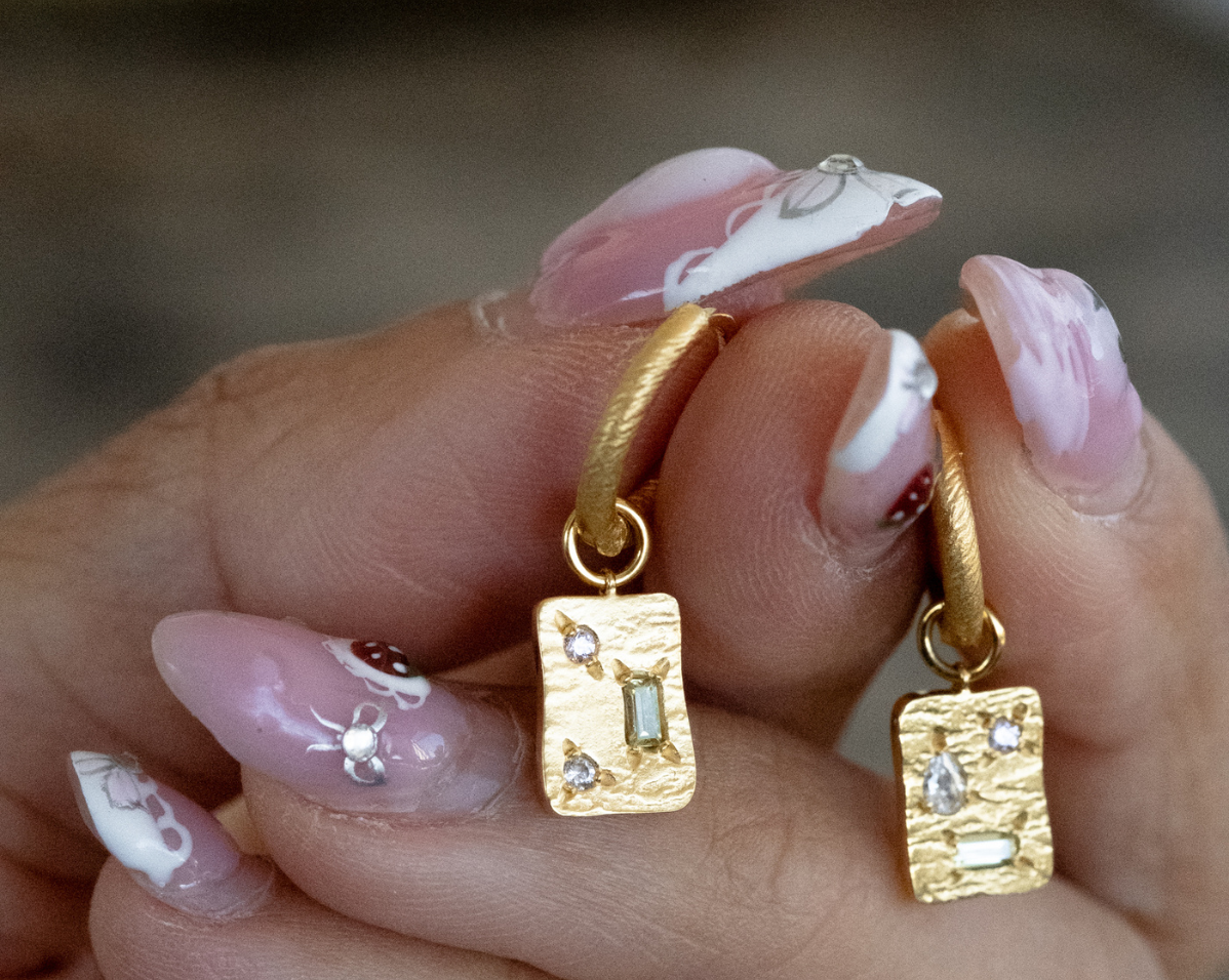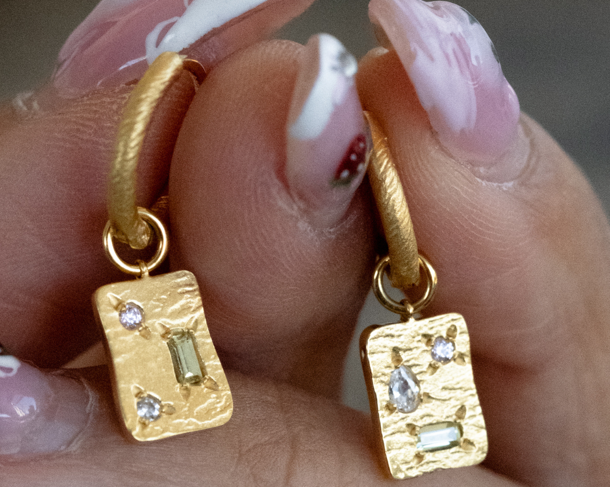 Add a touch of sparkle to your ear stack with these stunning Gemstone Hoops. Featuring brilliant CZ gemstones set in sleek, polished hoops, these earrings are designed to elevate your look with effortless elegance. This unreleased sample from our Piercing Collection combines timeless style with high-quality craftsmanship, making it a must-have for anyone who loves to stand out.