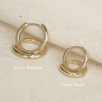 The perfect everyday hoops, the Grace Medium Solid Gold Hoops were designed to be worn all day everyday and is slightly larger than her sister, the Grace Small Solid Gold Hoops.