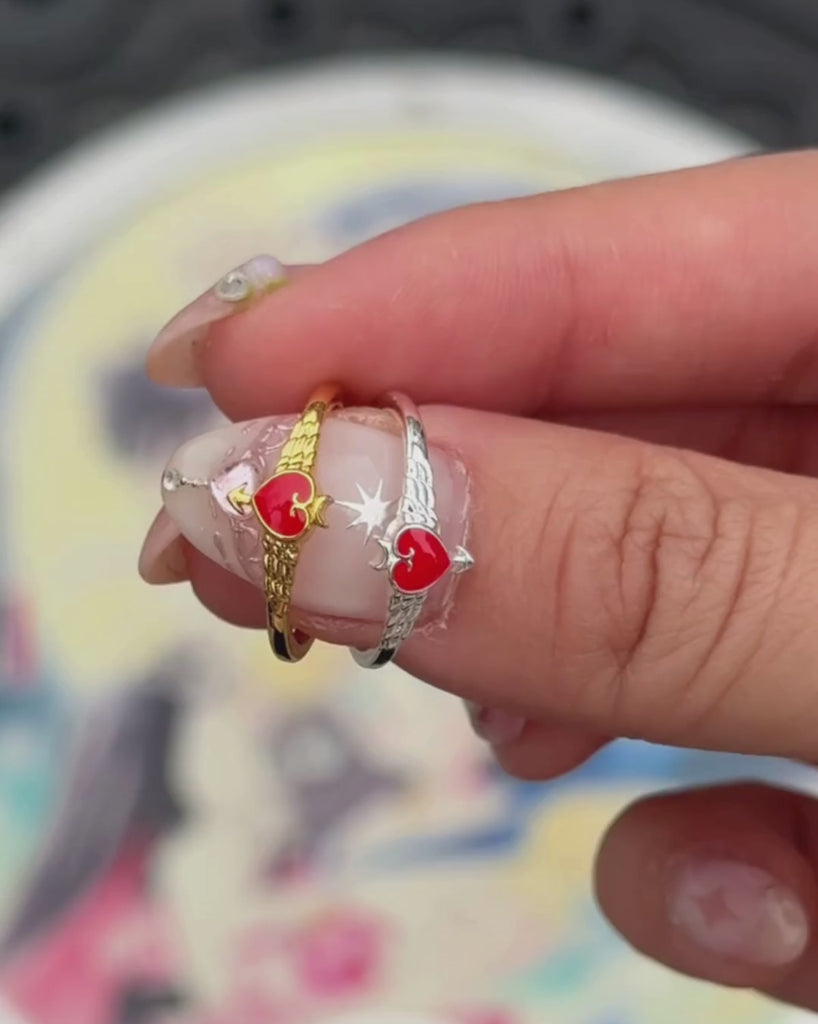 Inspired by the fiery spirit of the fearless Sailor Mars, this ring channels unwavering loyalty and fierce conviction. The crimson heart and golden wings symbolise passion in action; bold, unapologetic, and full of fire. Wear it as an affirming talisman for the days you refuse to dim.