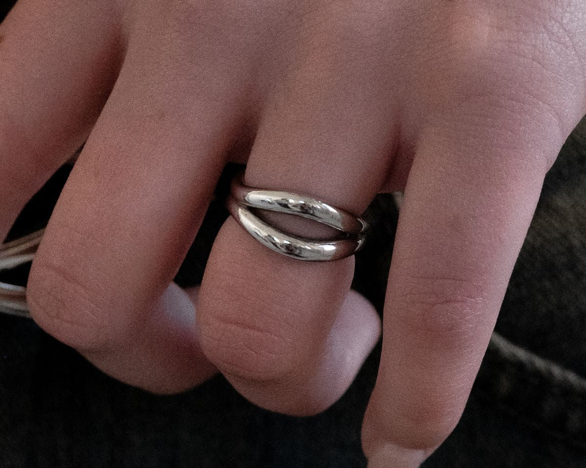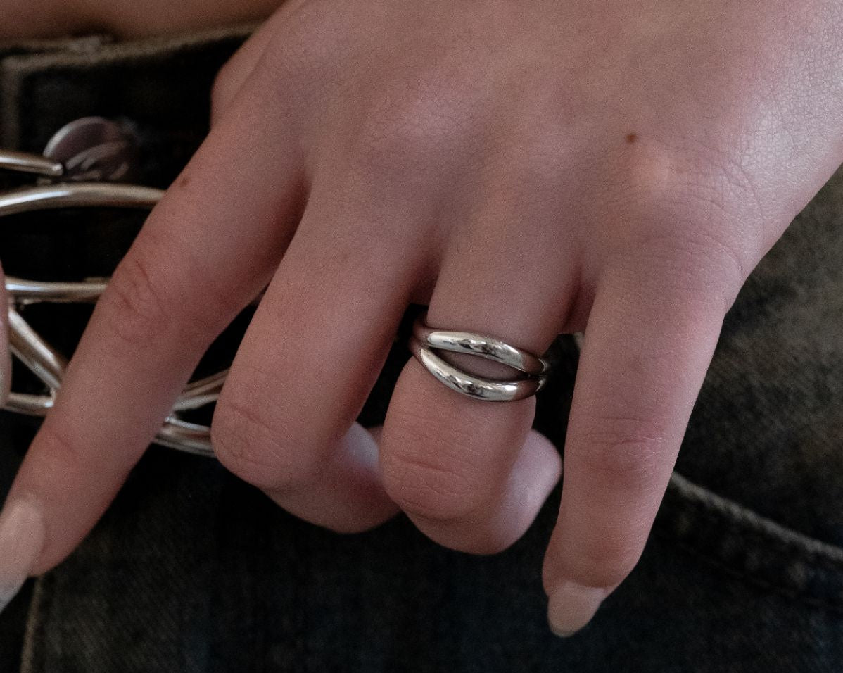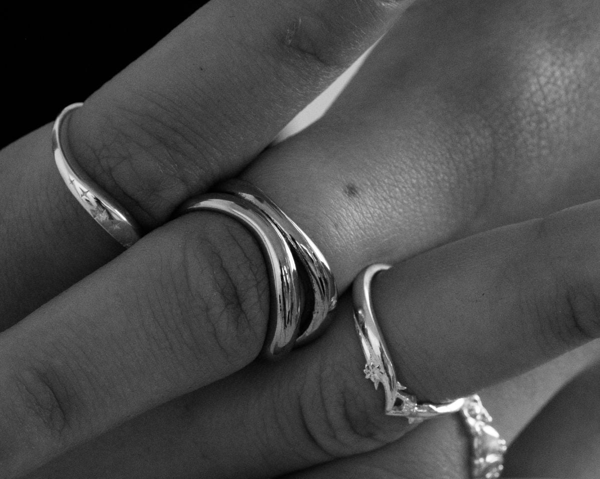 Hana embodies balance - two sculptural silver bands stacked in one seamless ring, symbolising the two sides of your story. Minimal at first glance but bold in presence, she’s the kind of piece that feels just as right with a hoodie and cargos as she does with a black slip dress.