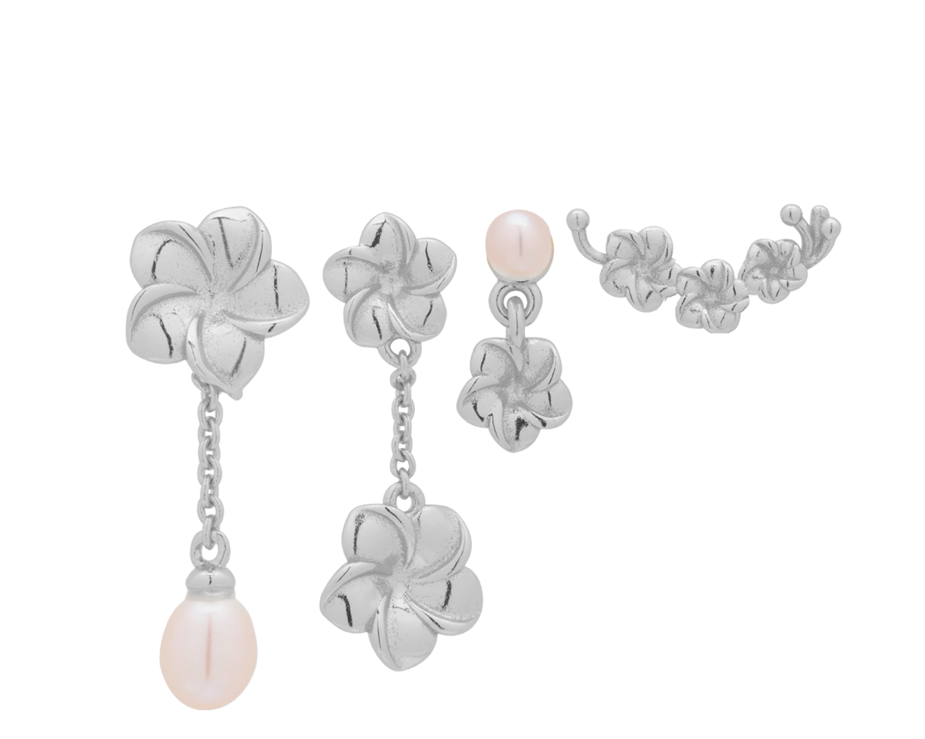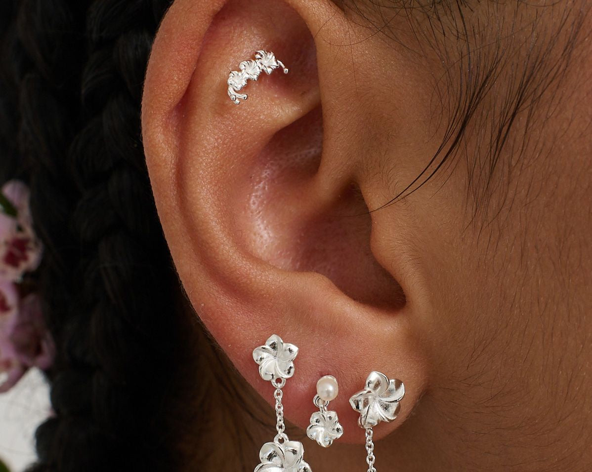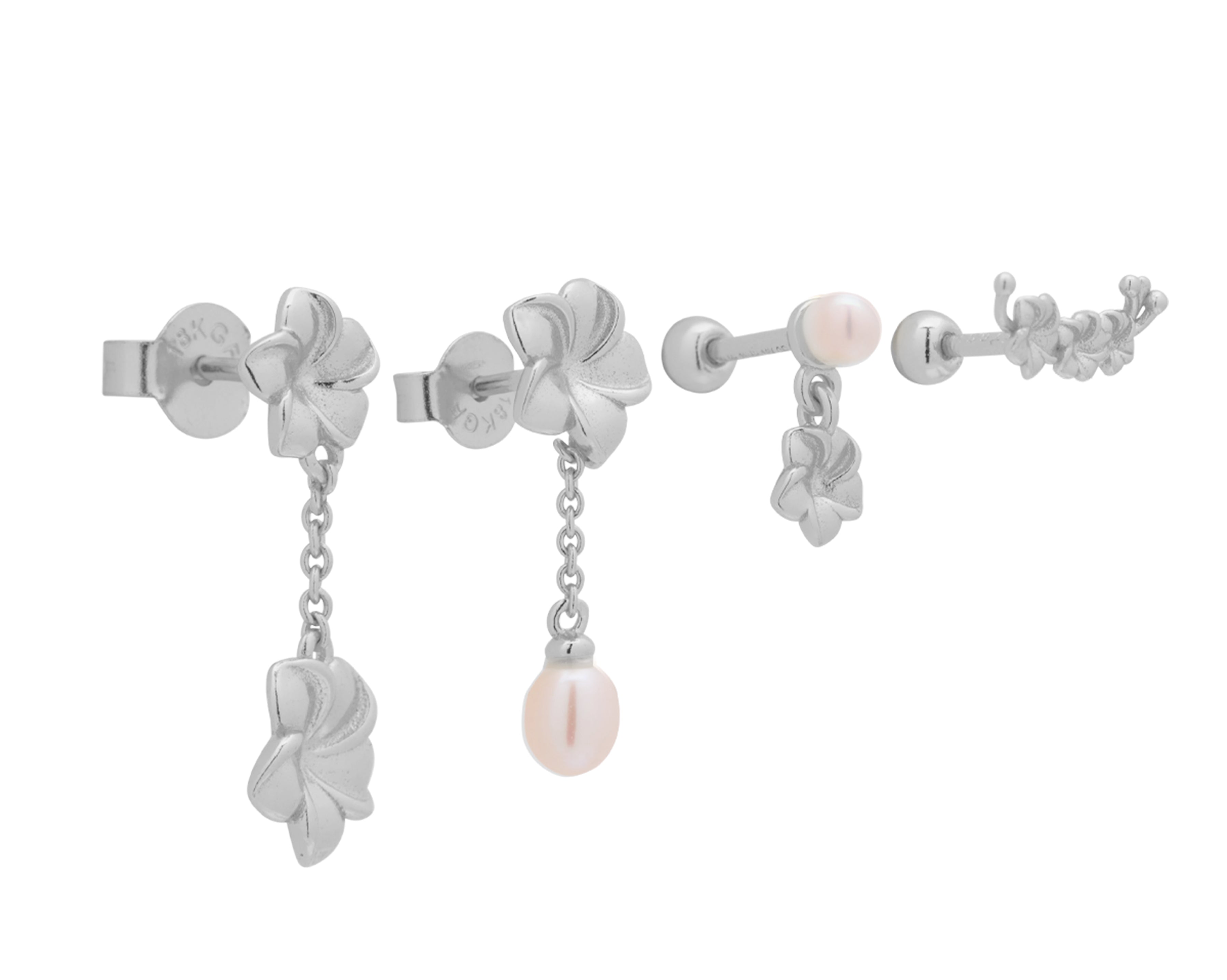 Hibiscus Flowers Earrings Set - Sterling Silver